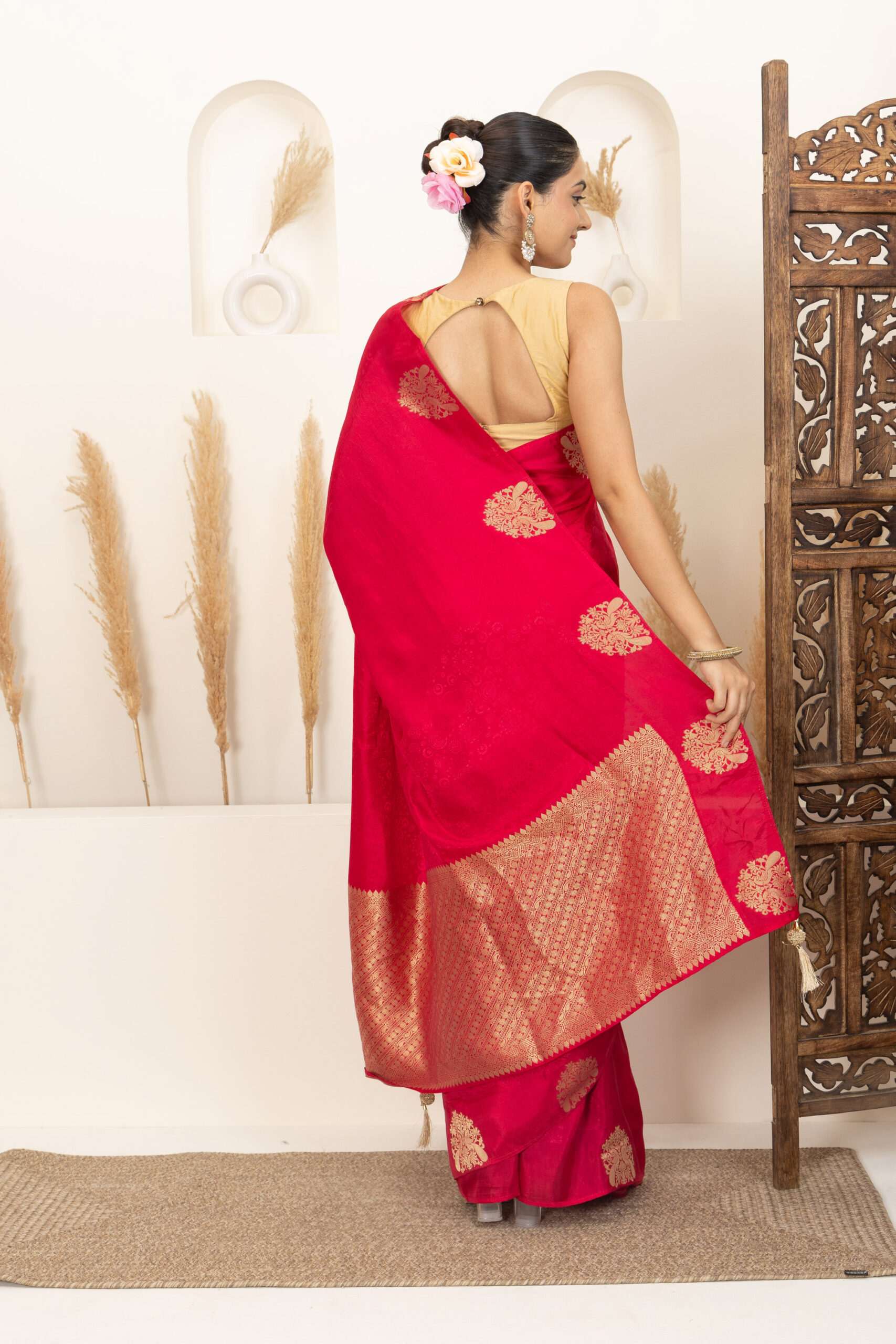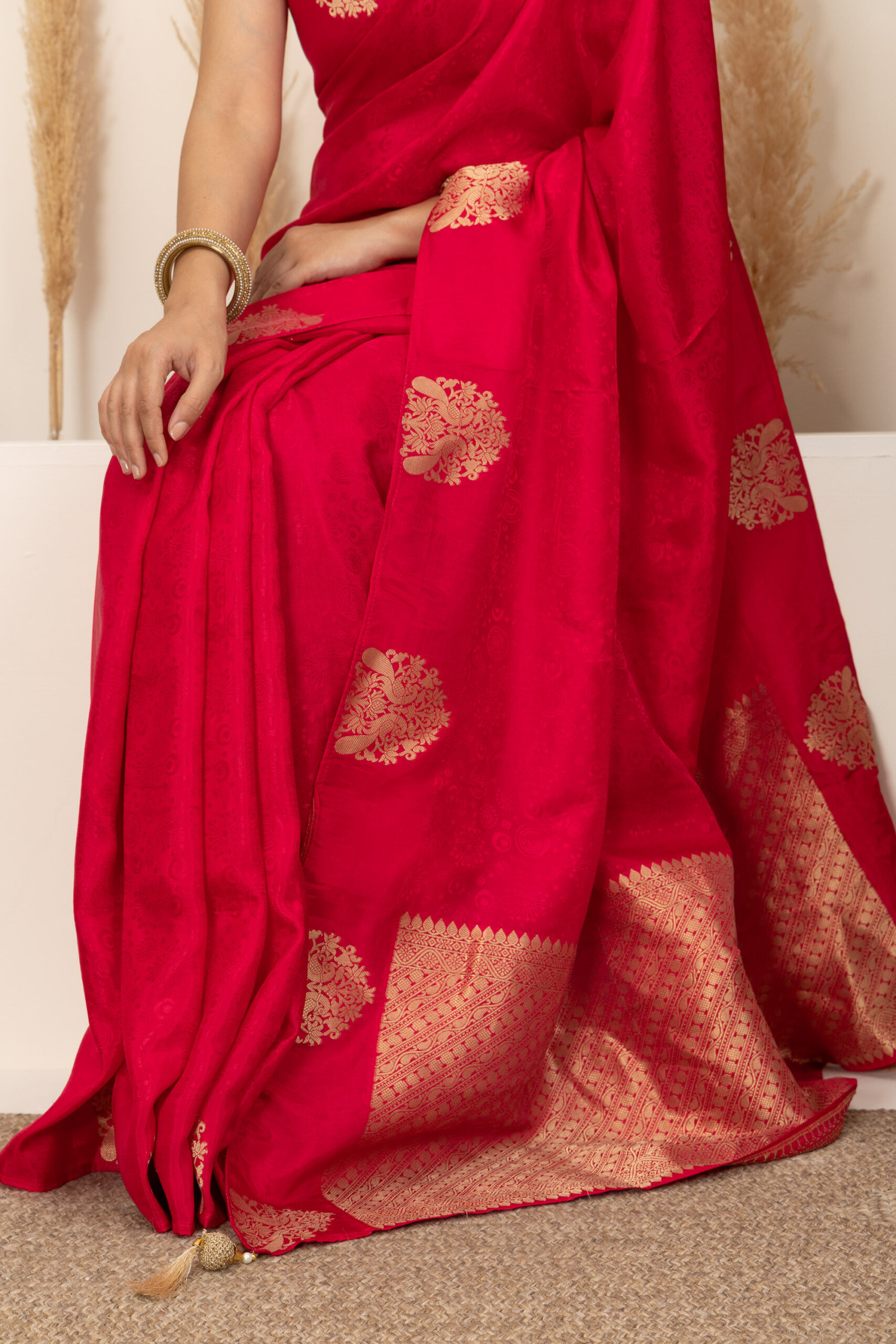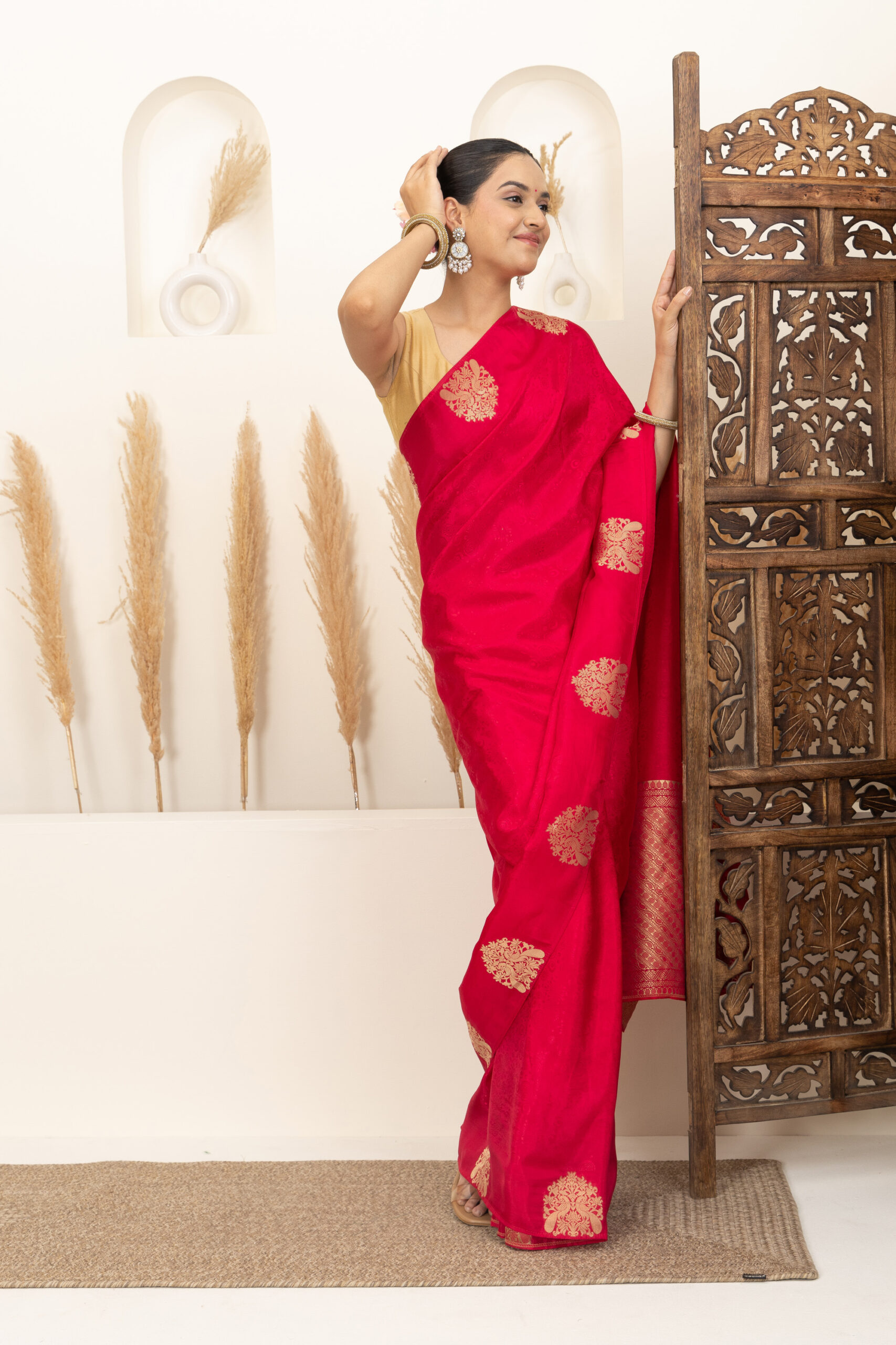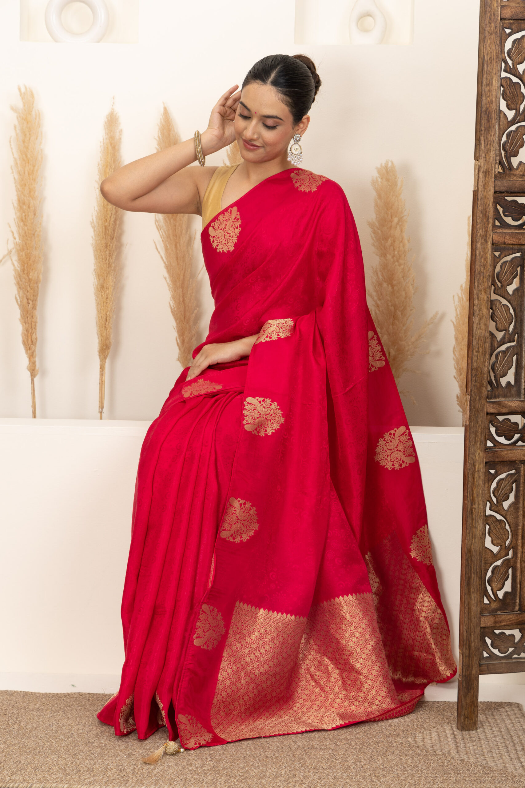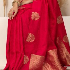 Be the first to review “Bright Crimson Red with gold zari accents”