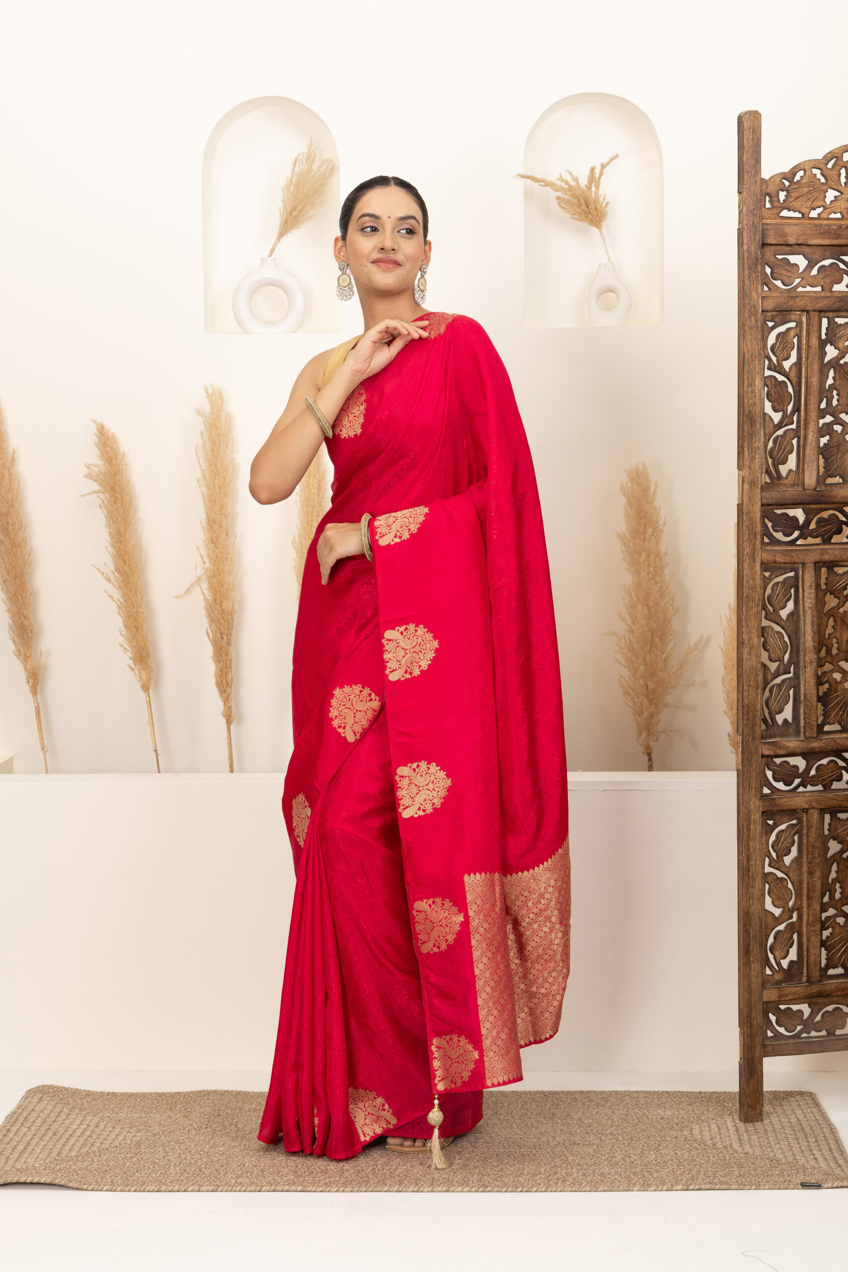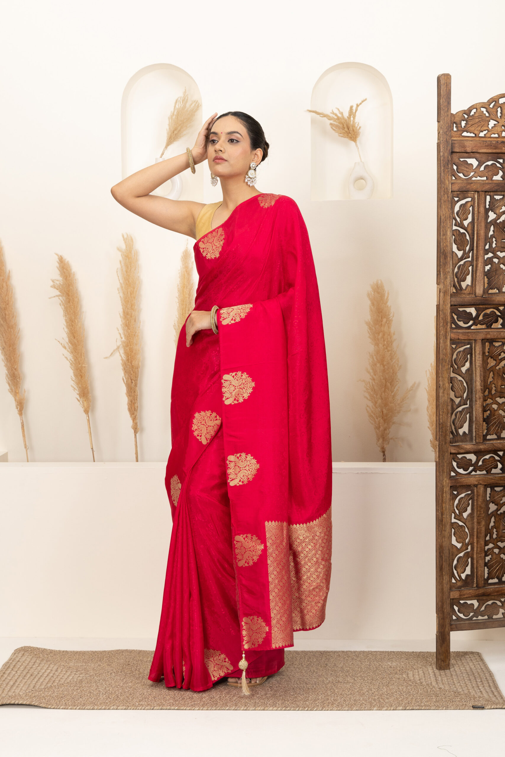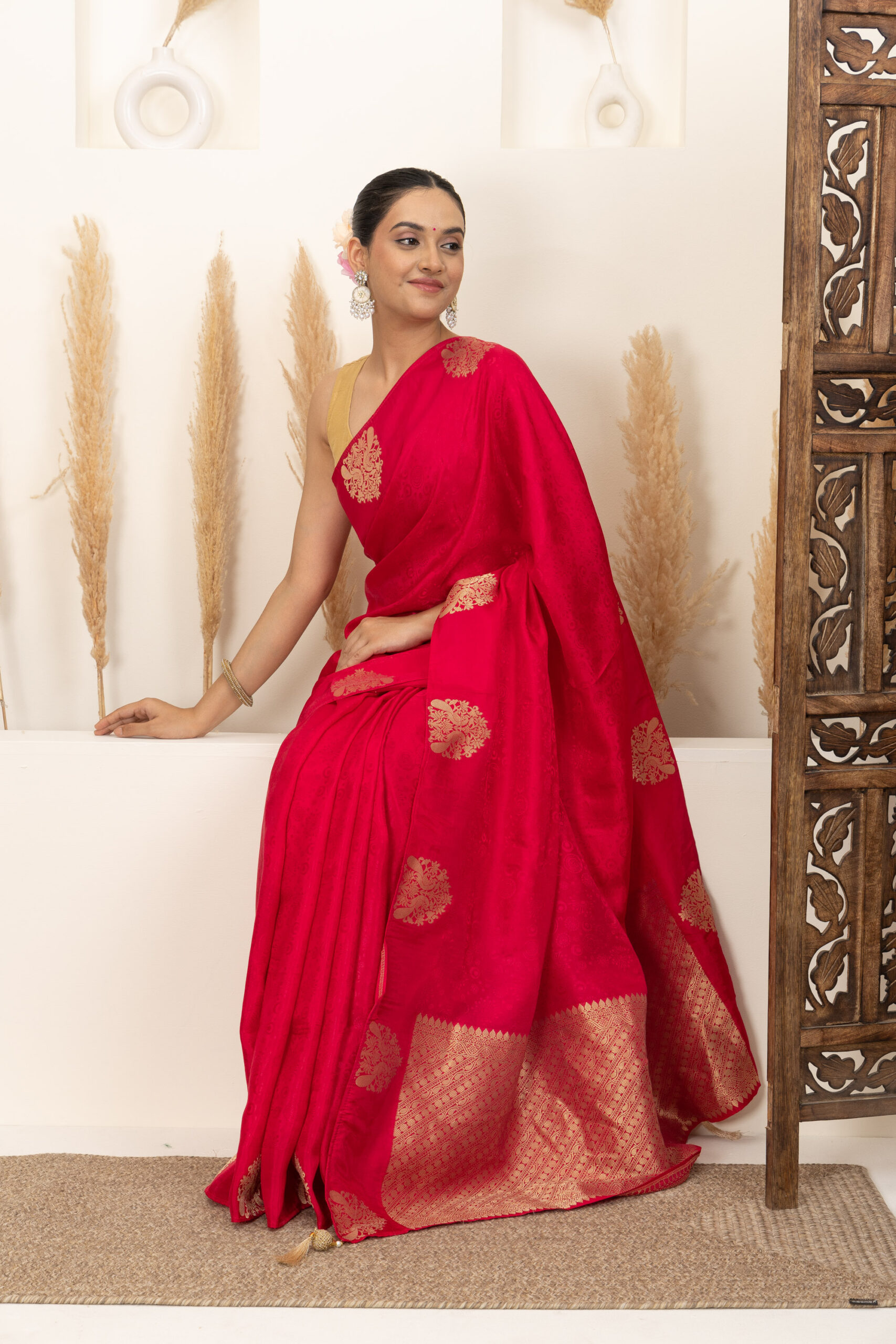 Be the first to review “Bright Crimson Red with gold zari accents”