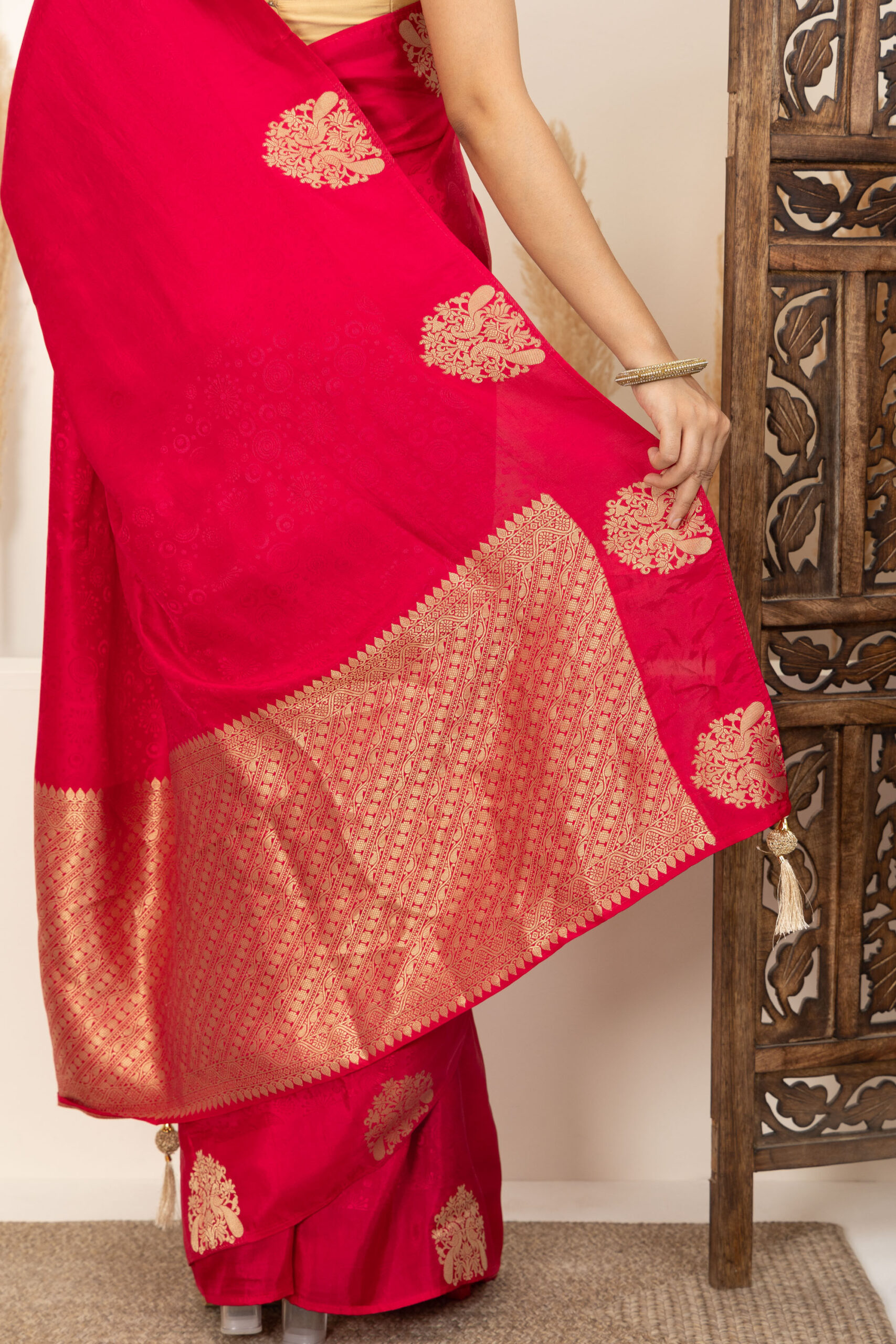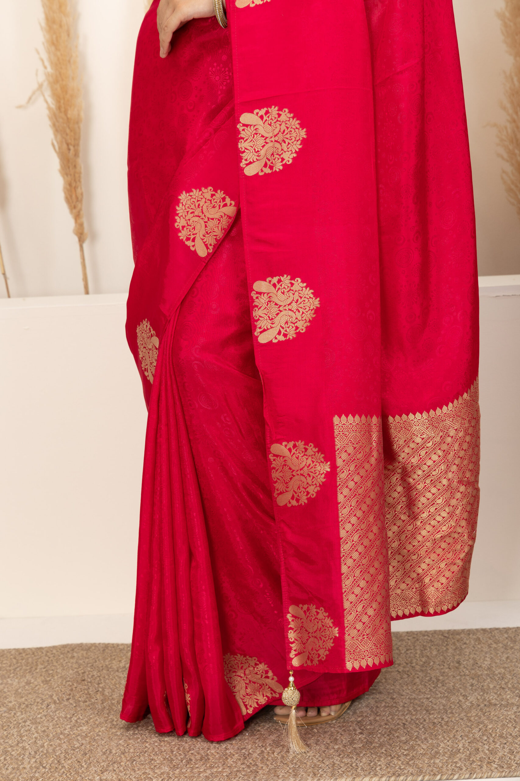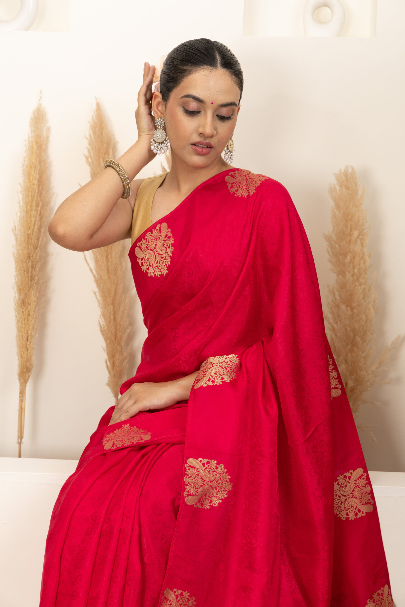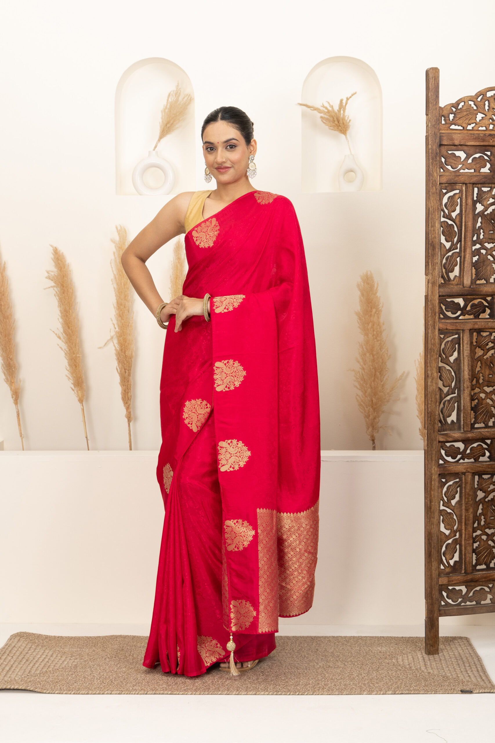 Be the first to review “Bright Crimson Red with gold zari accents”