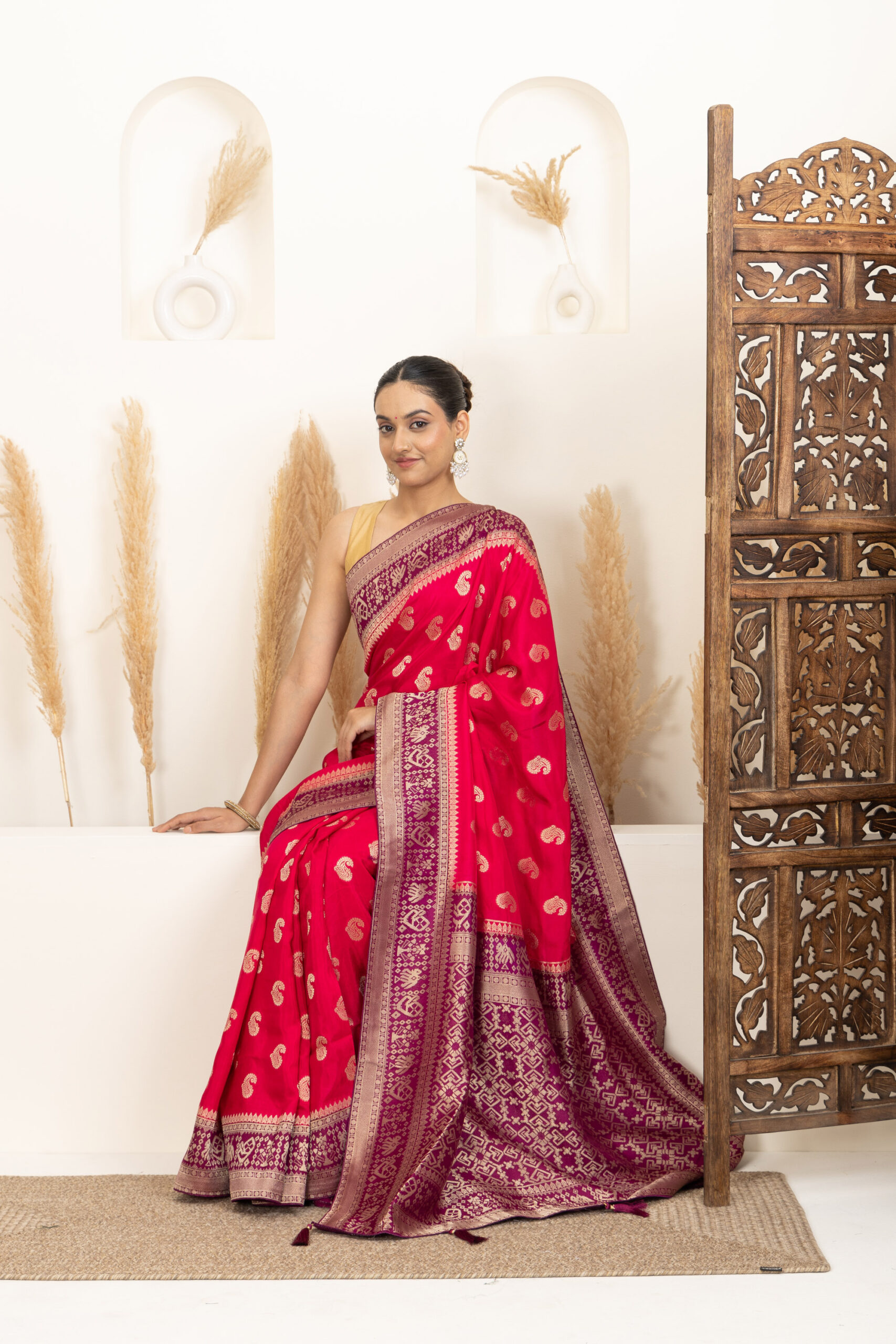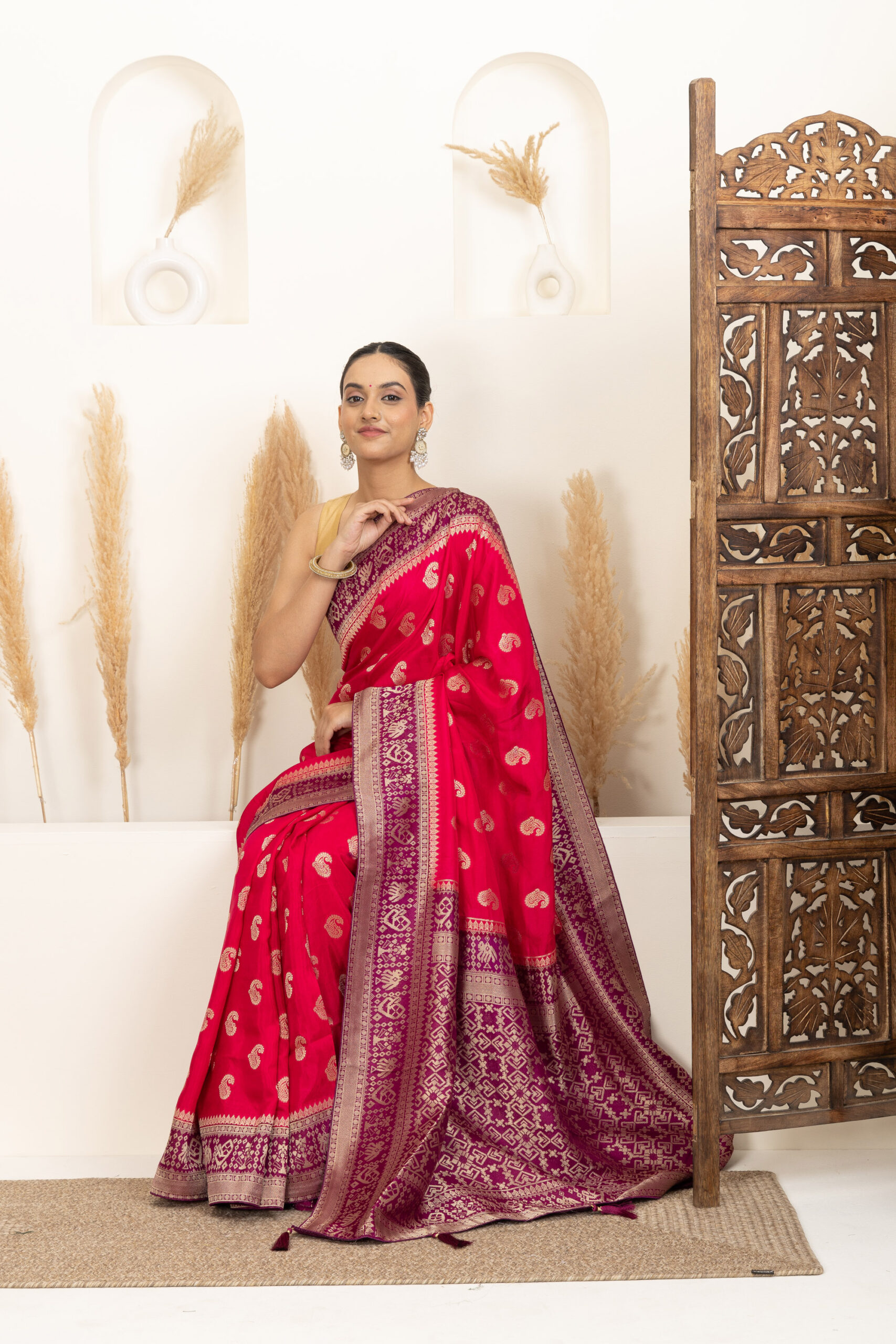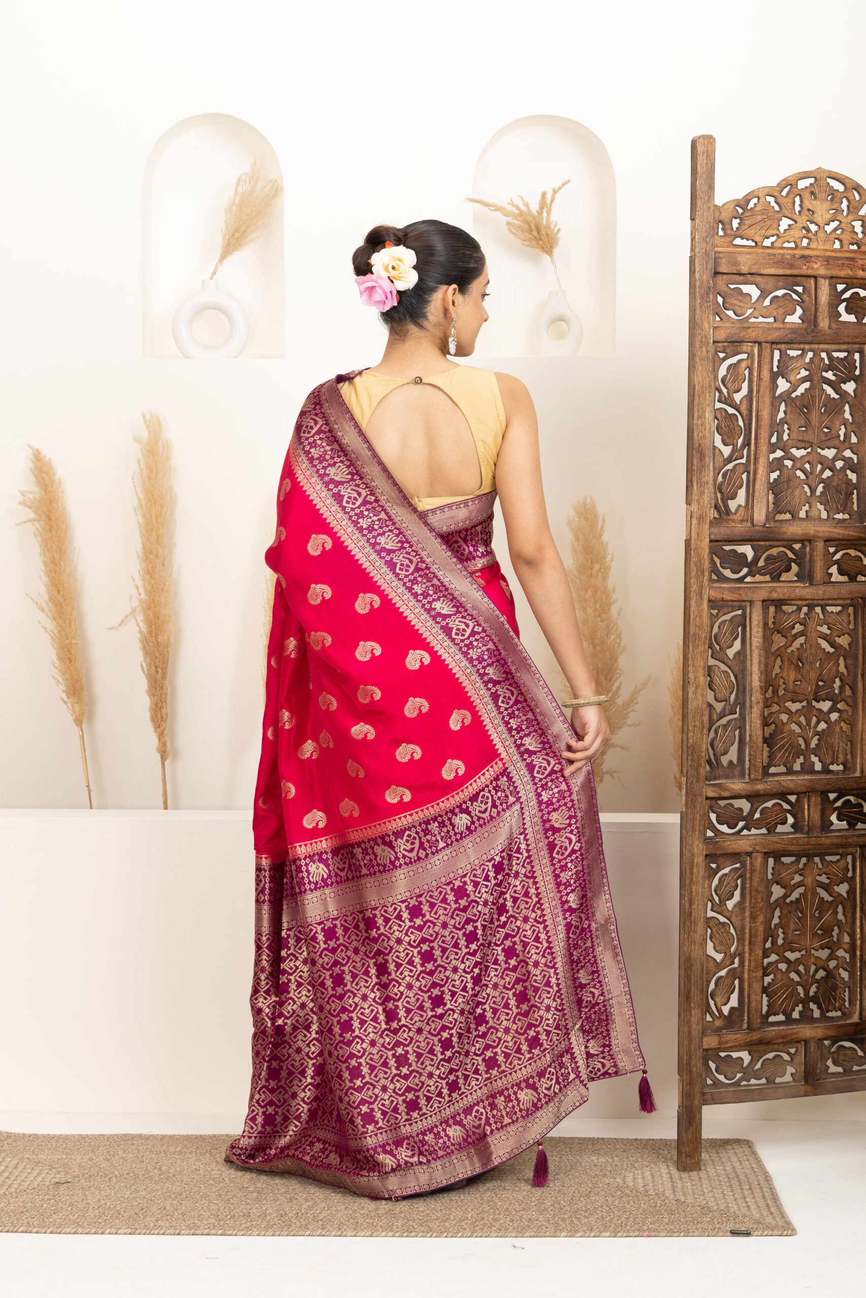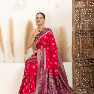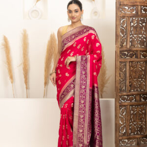 Overall Style: A vibrant and festive saree that reflects traditional elegance. Perfect for weddings, festive celebrations, and cultural occasions, offering a bold and regal look.