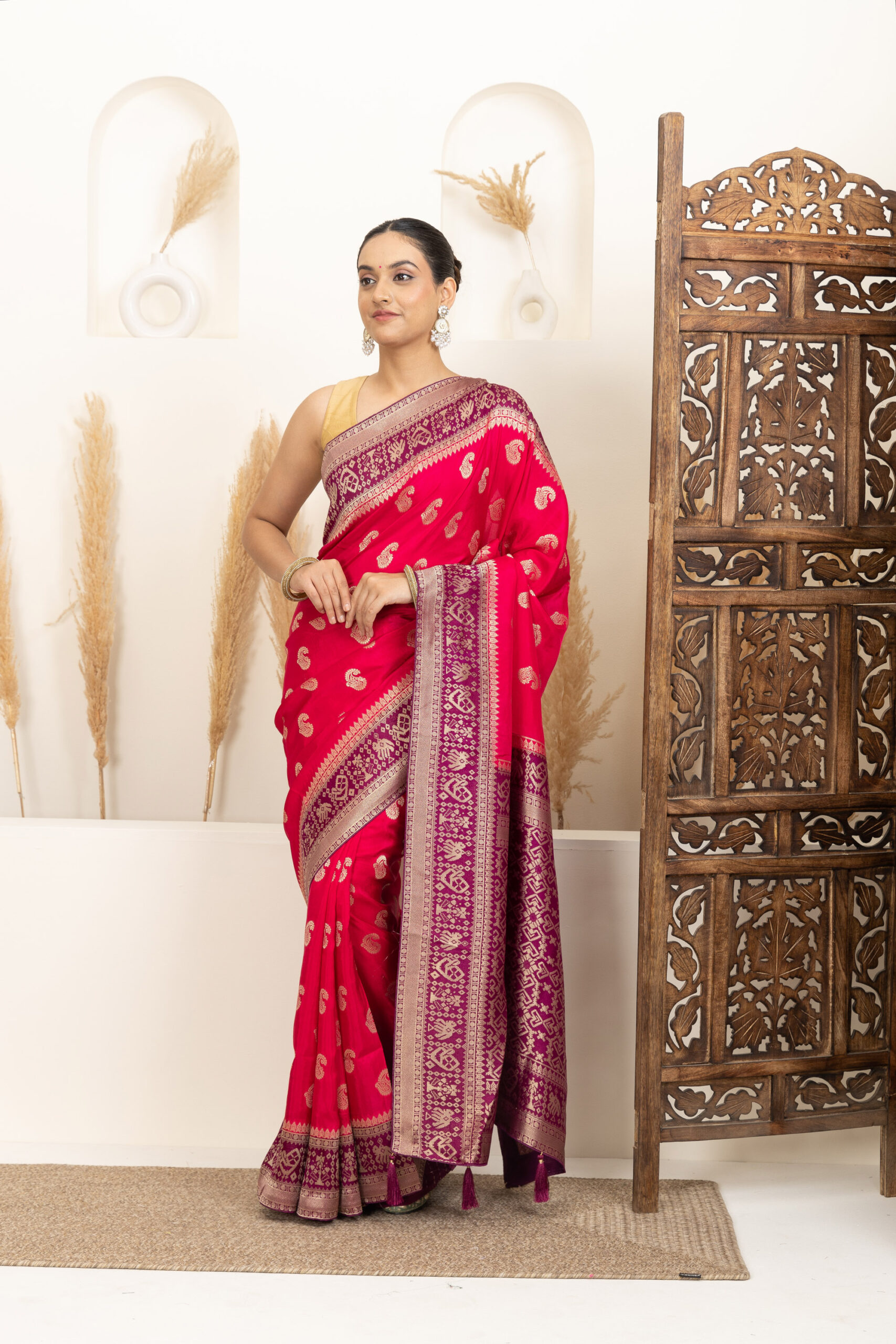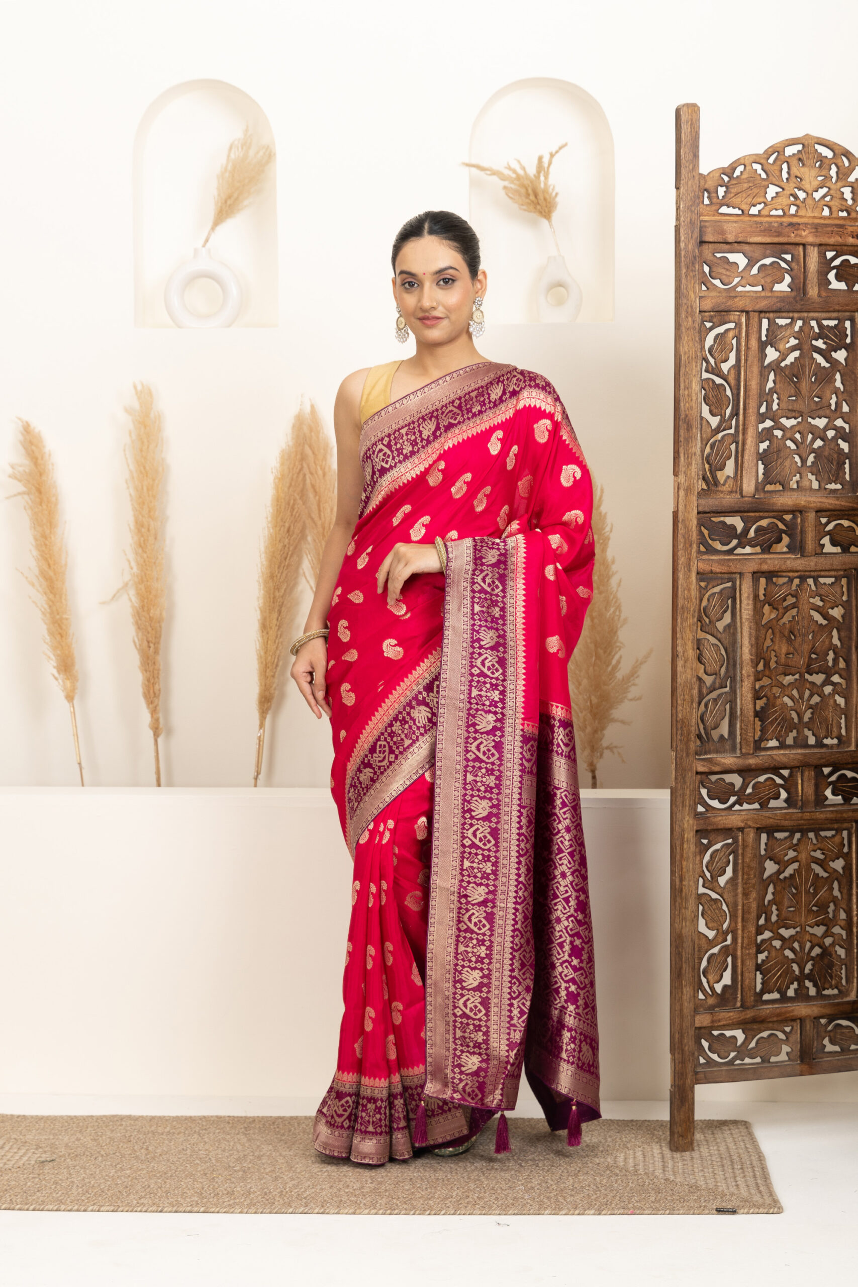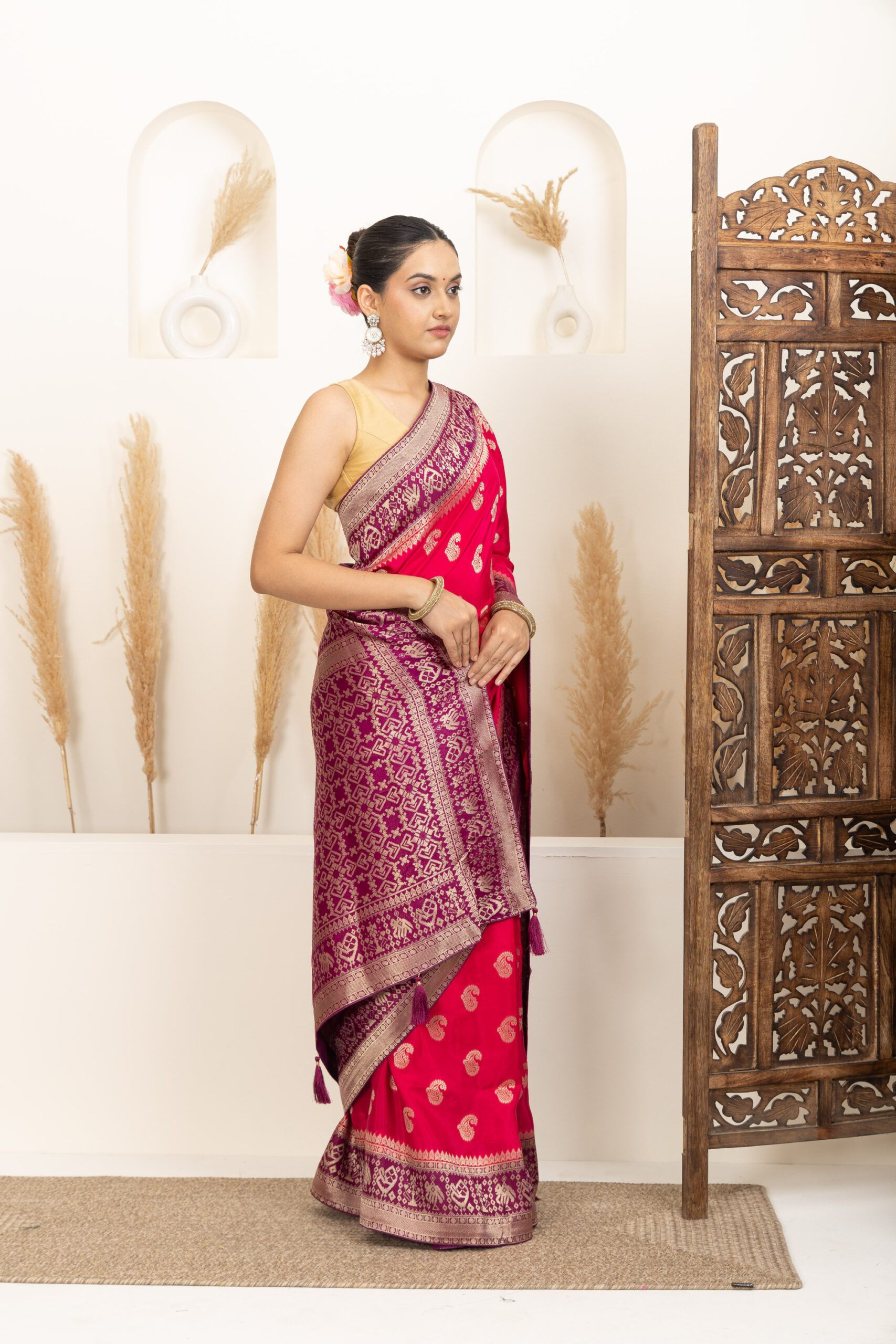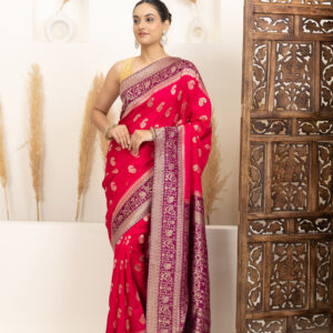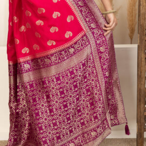 ● Colour: Bright Rani Pink with contrasting purple and gold detailing