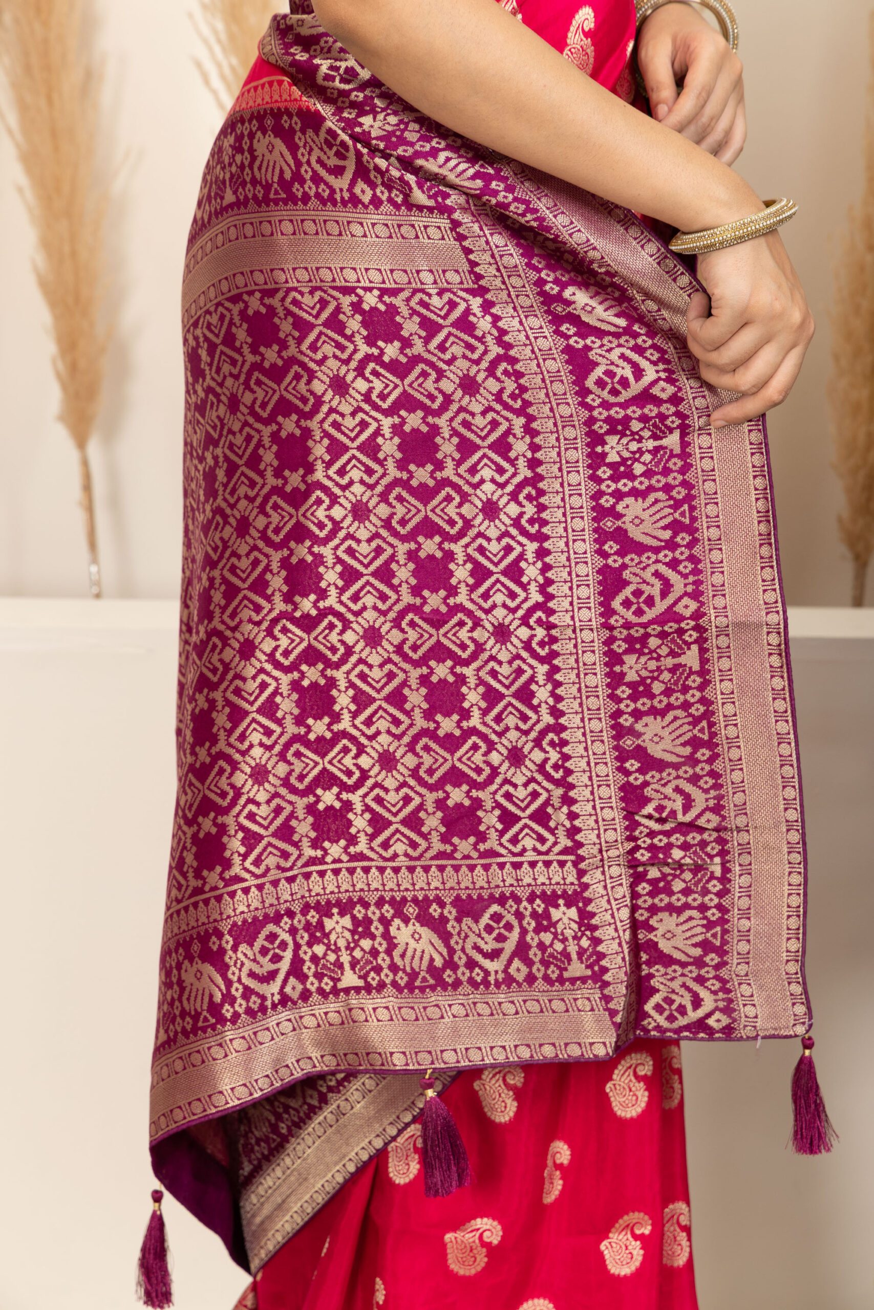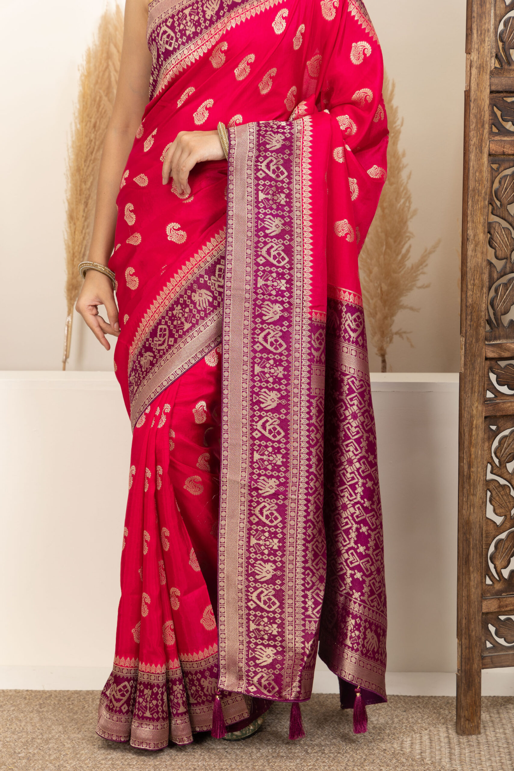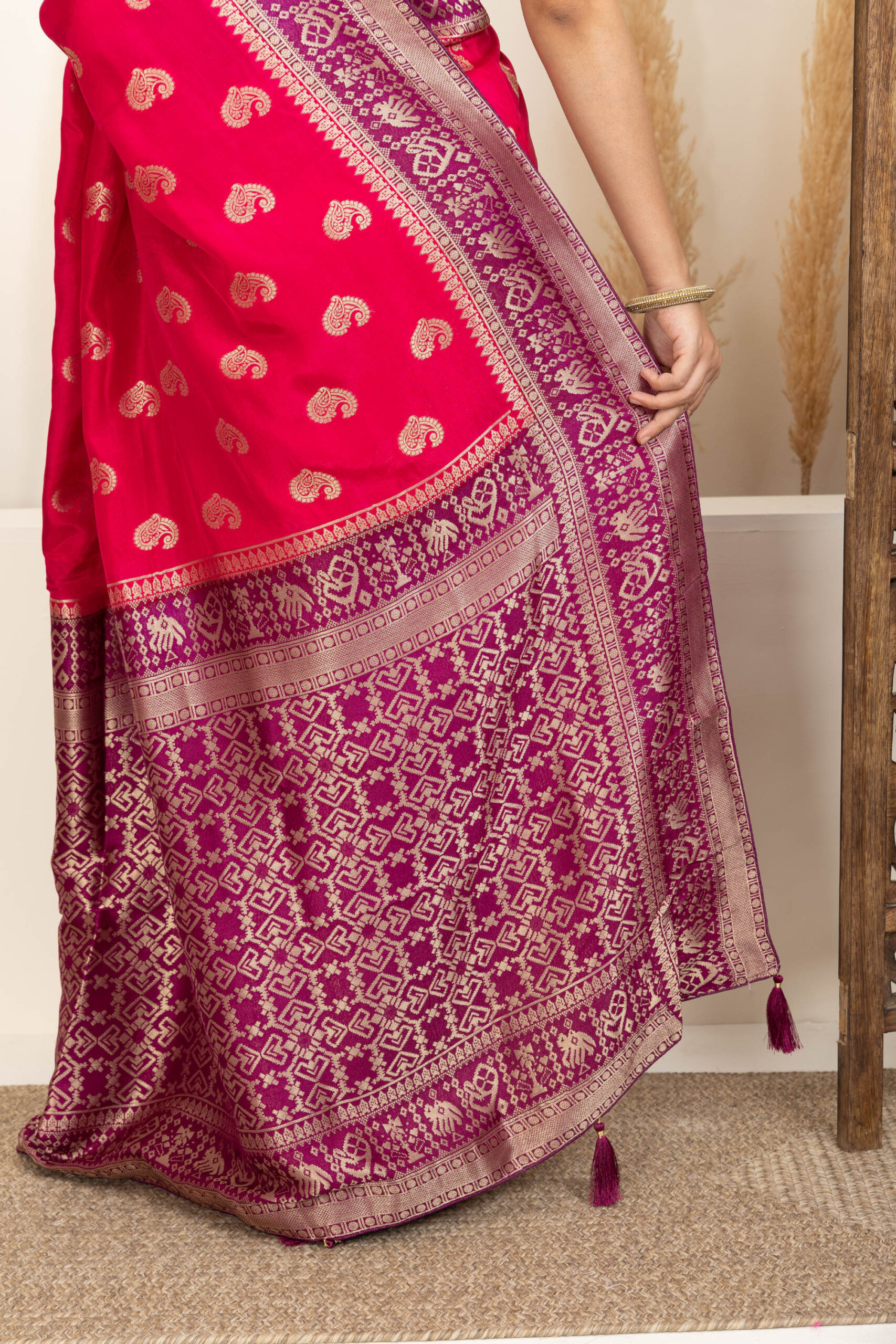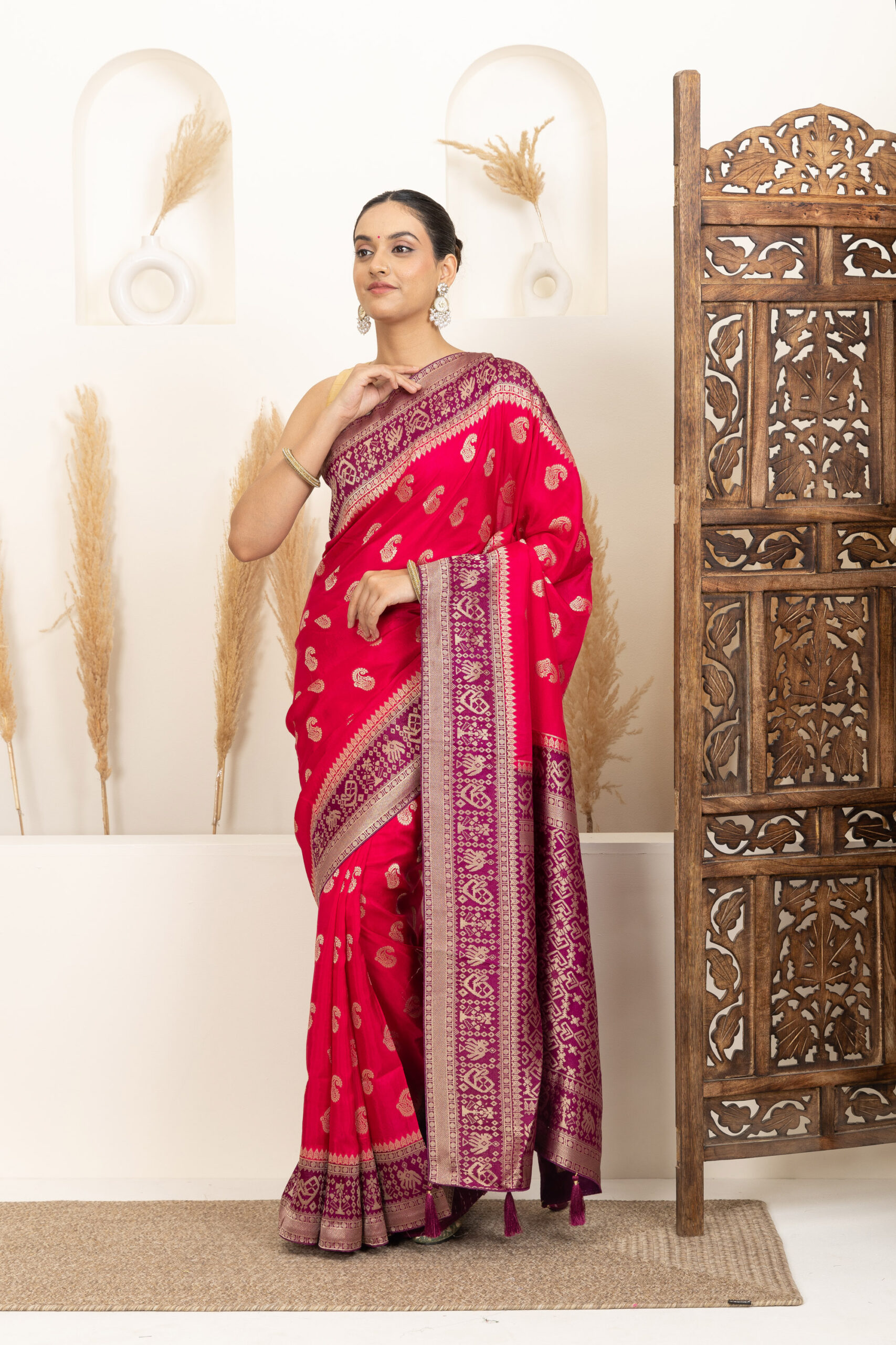 ● Colour: Bright Rani Pink with contrasting purple and gold detailing