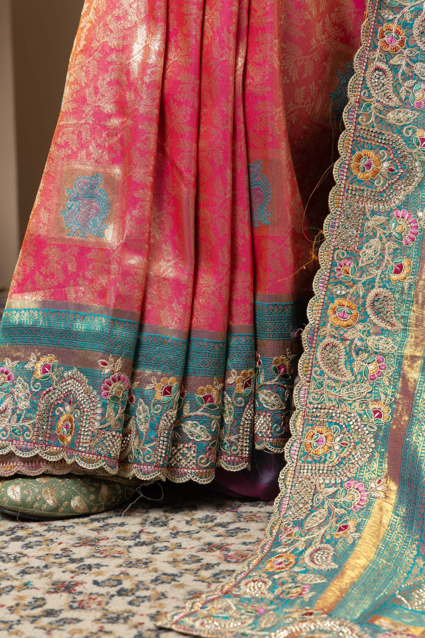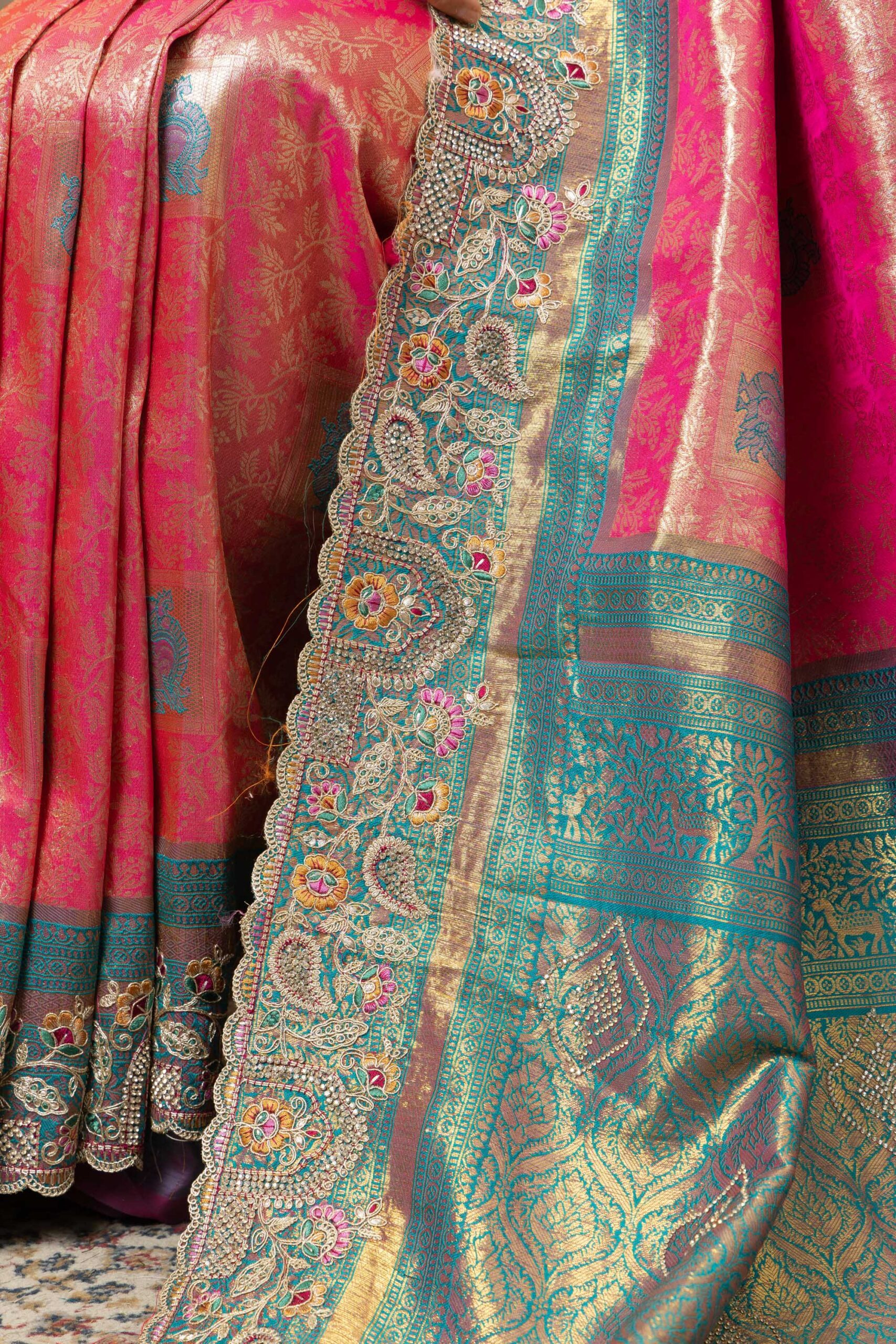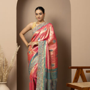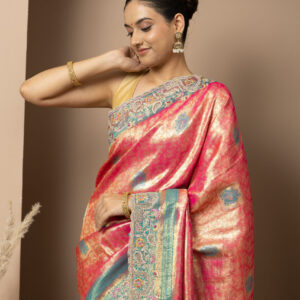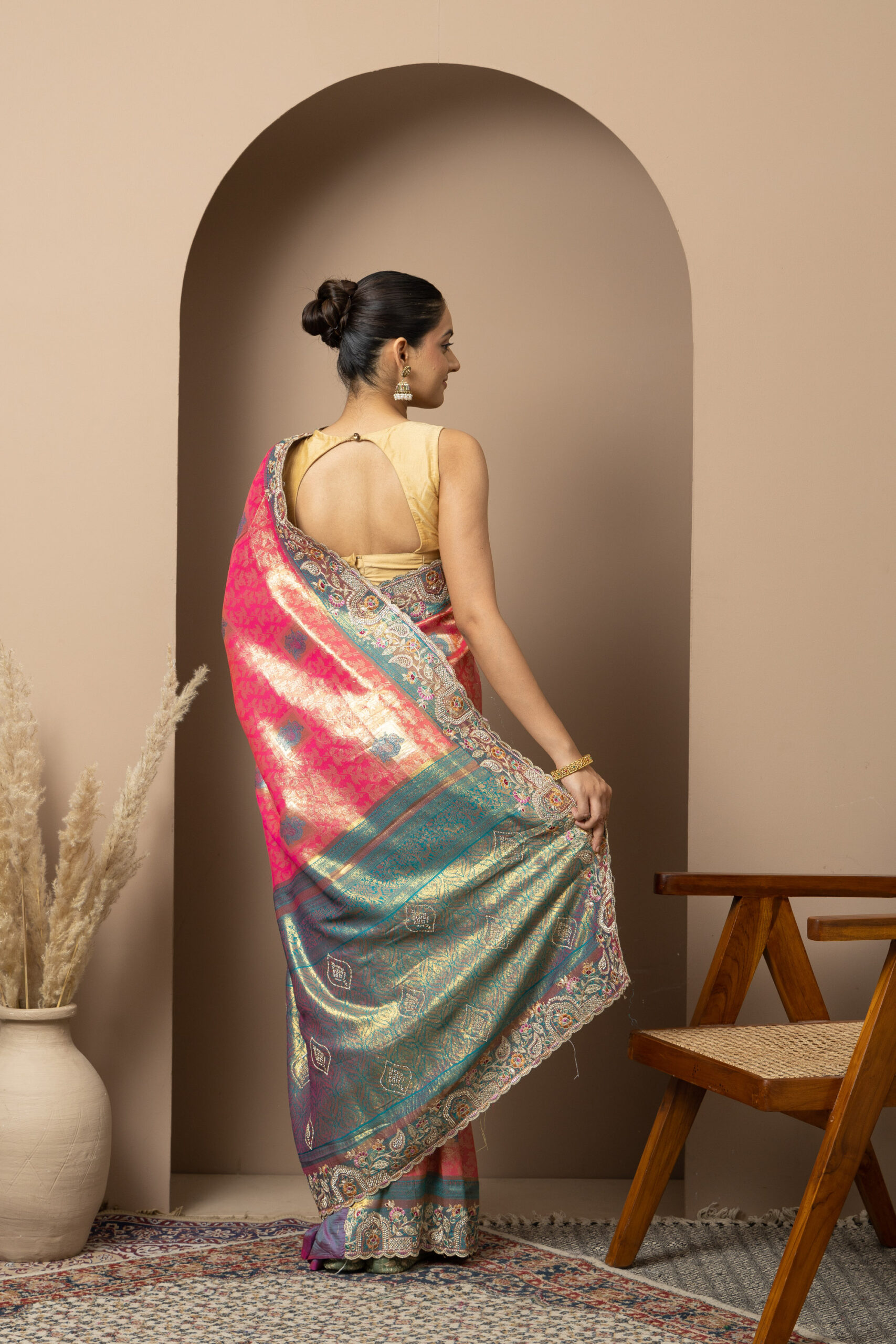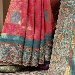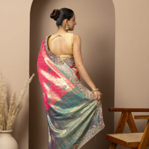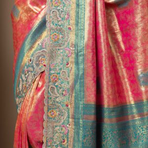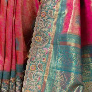 Overall Style: A vibrant and luxurious saree crafted for grand occasions. The bold colour combination and intricate craftsmanship make it ideal for weddings, receptions, and festive celebrations where you want to make a striking statement.
