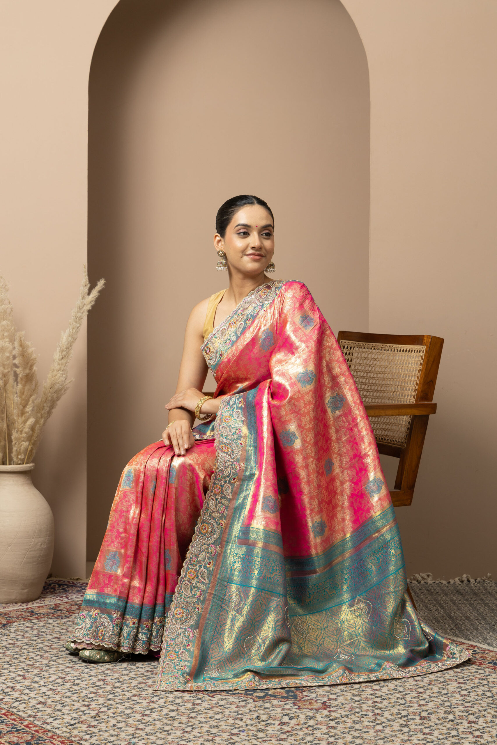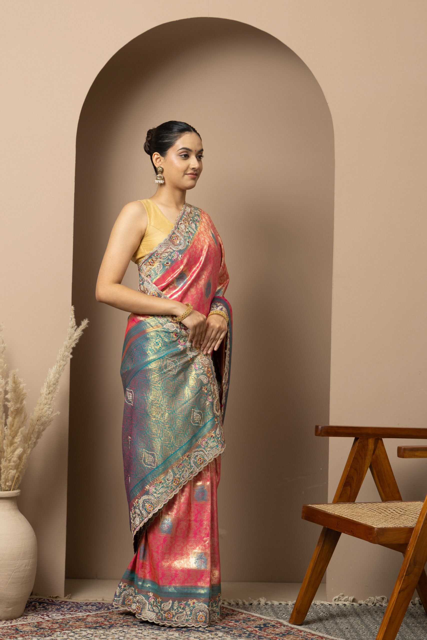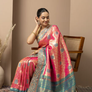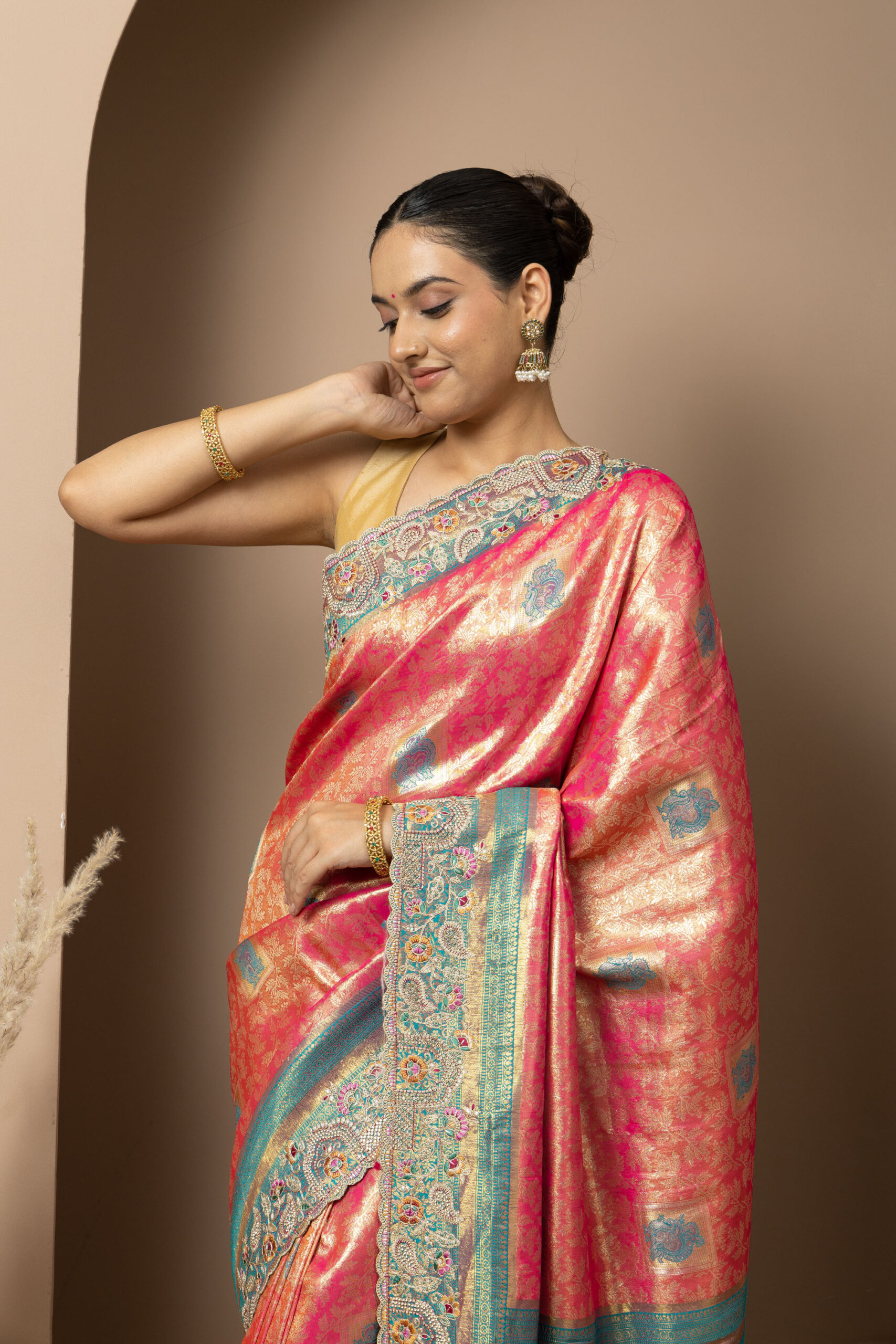 Overall Style: A vibrant and luxurious saree crafted for grand occasions. The bold colour combination and intricate craftsmanship make it ideal for weddings, receptions, and festive celebrations where you want to make a striking statement.