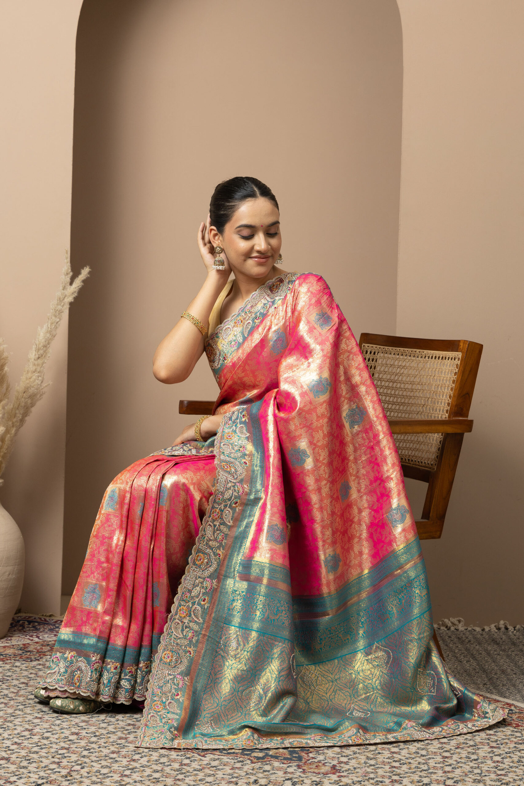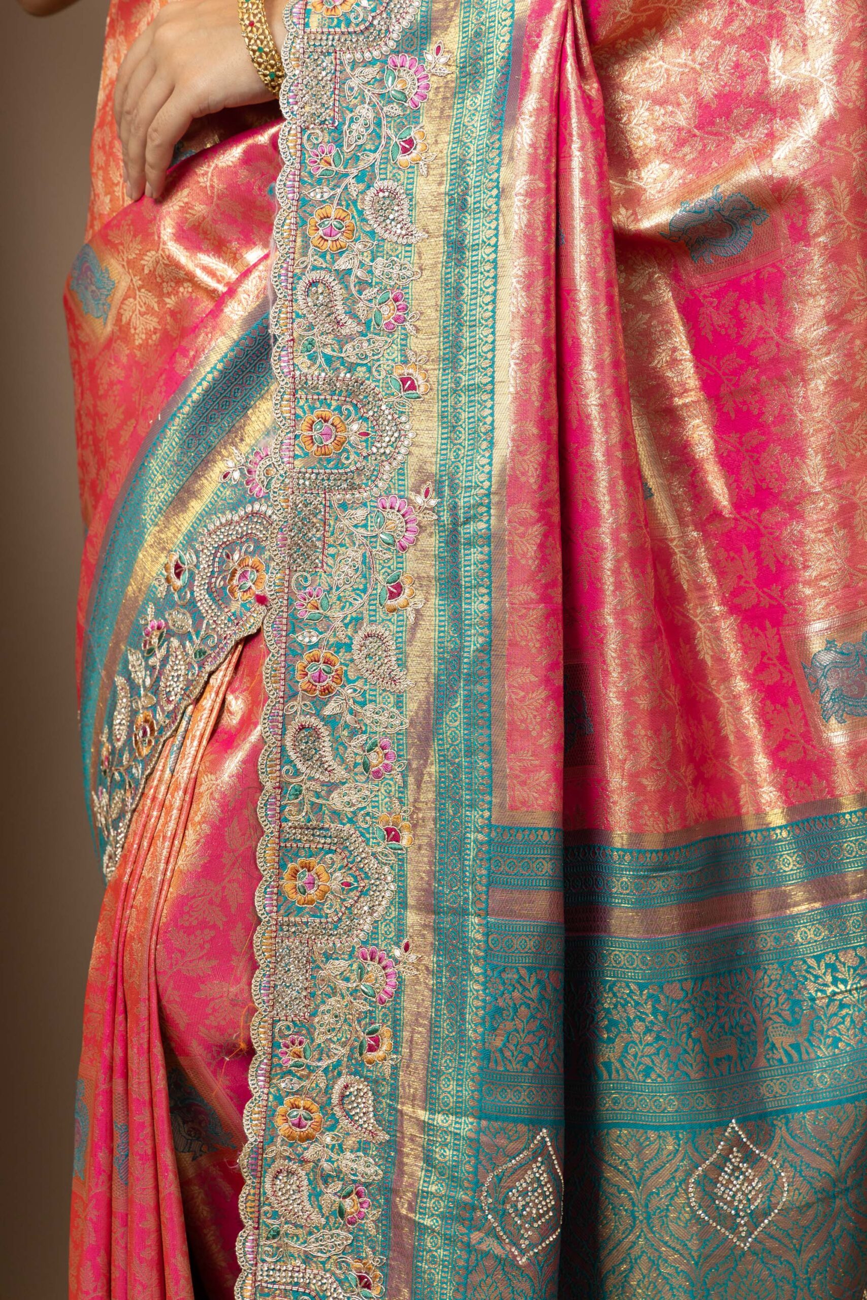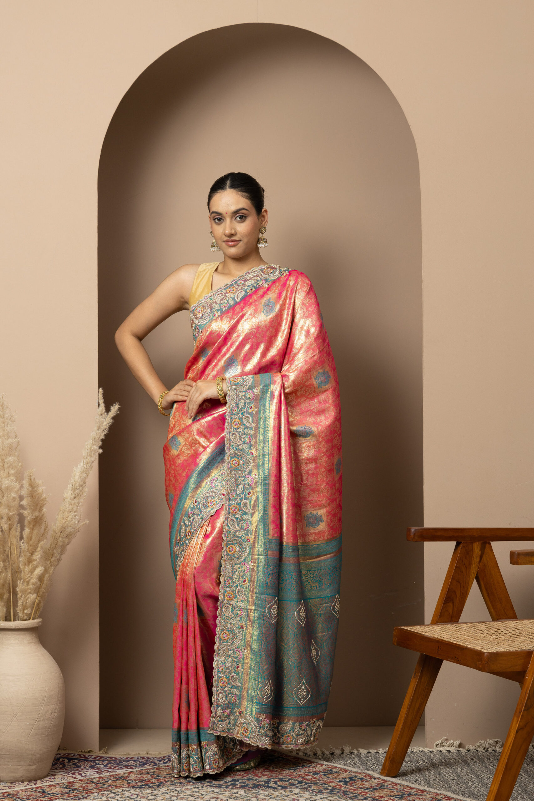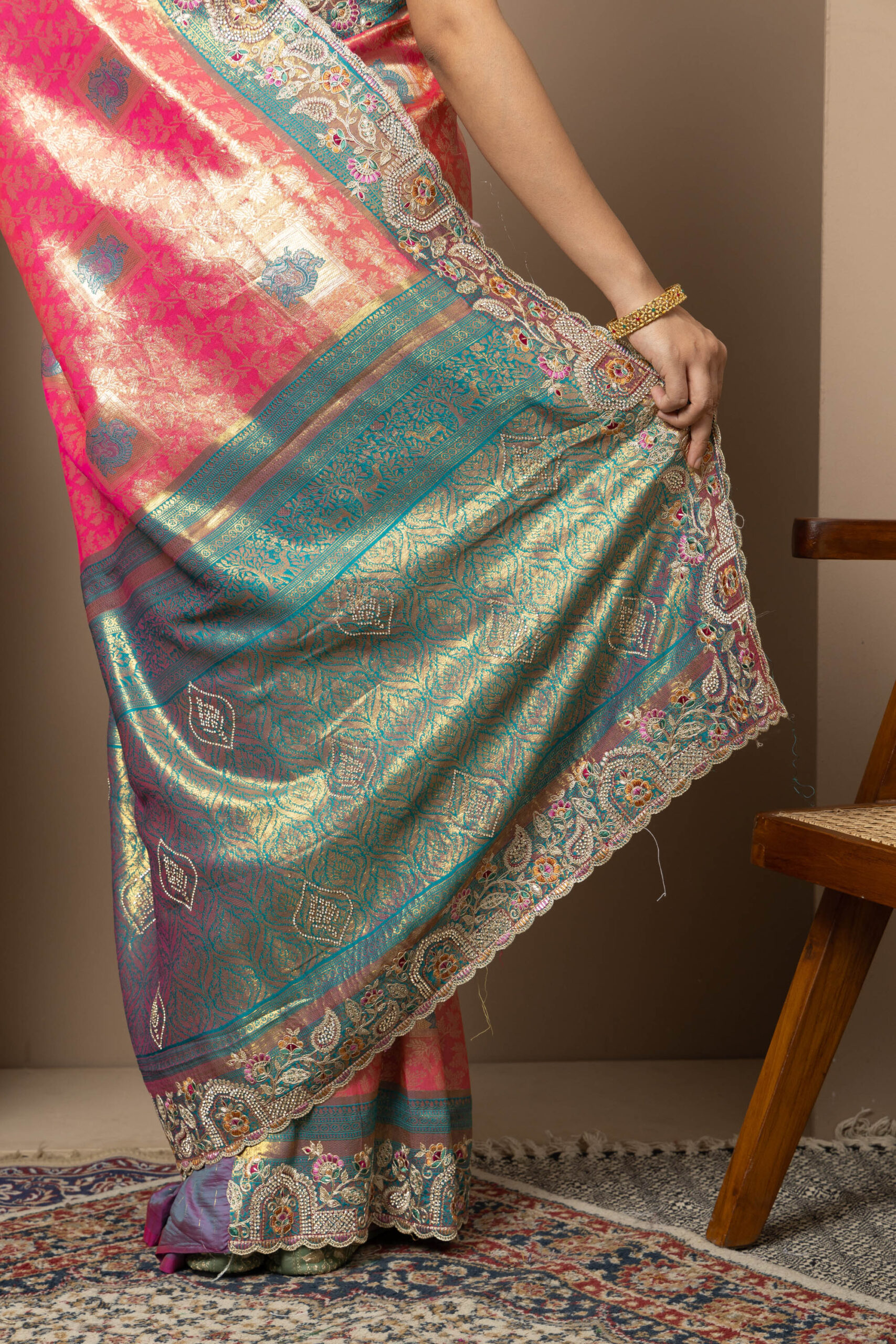 Overall Style: A vibrant and luxurious saree crafted for grand occasions. The bold colour combination and intricate craftsmanship make it ideal for weddings, receptions, and festive celebrations where you want to make a striking statement.