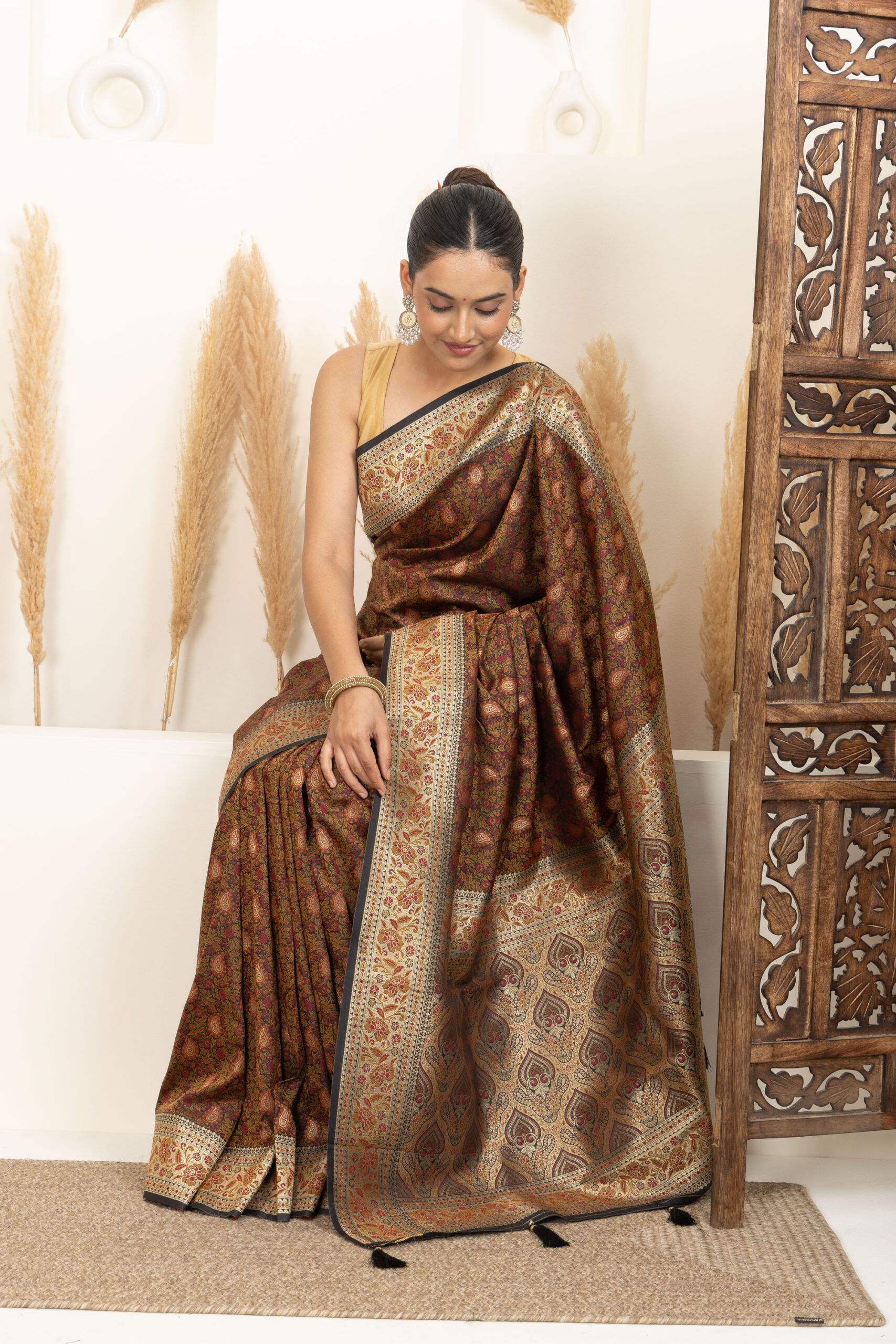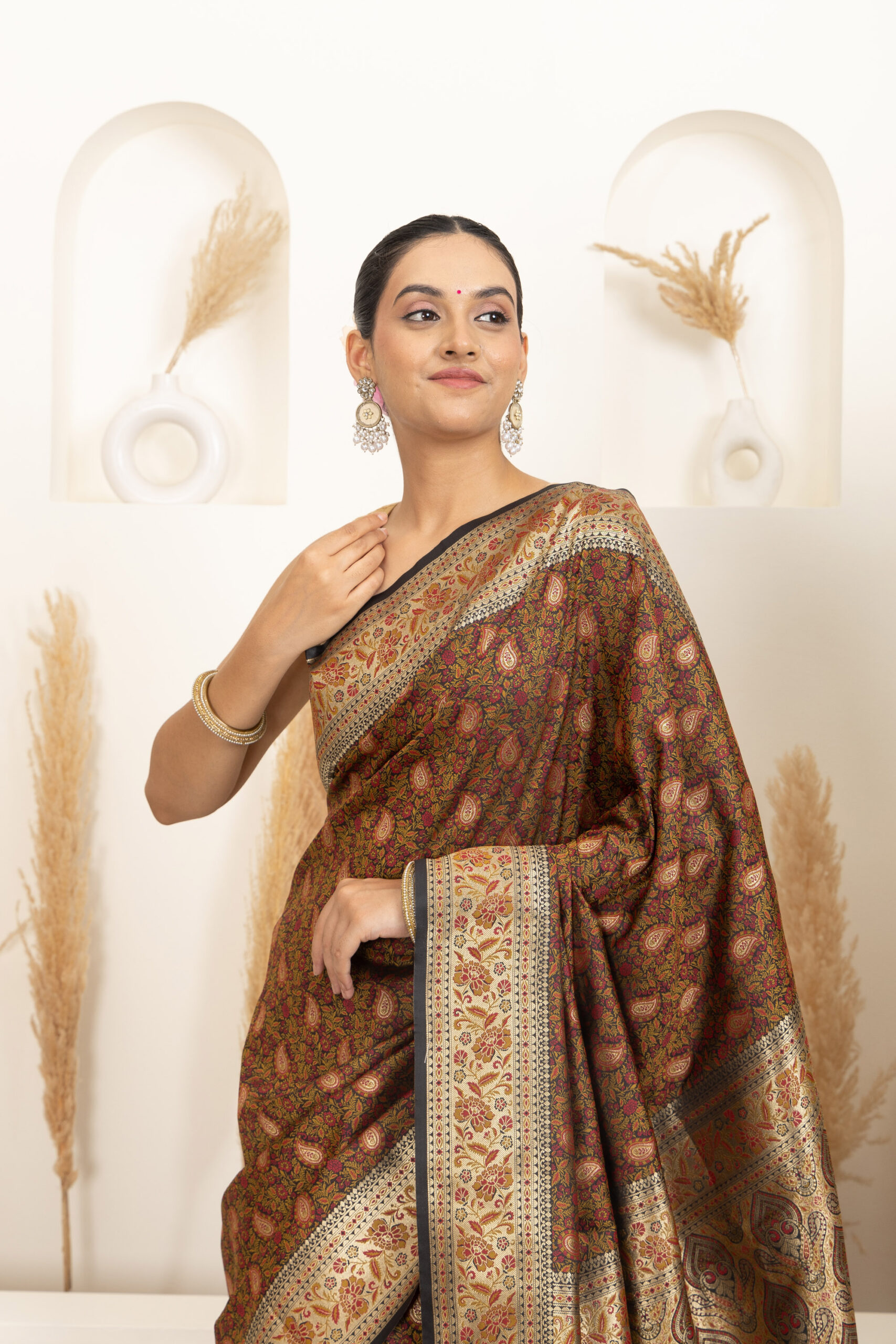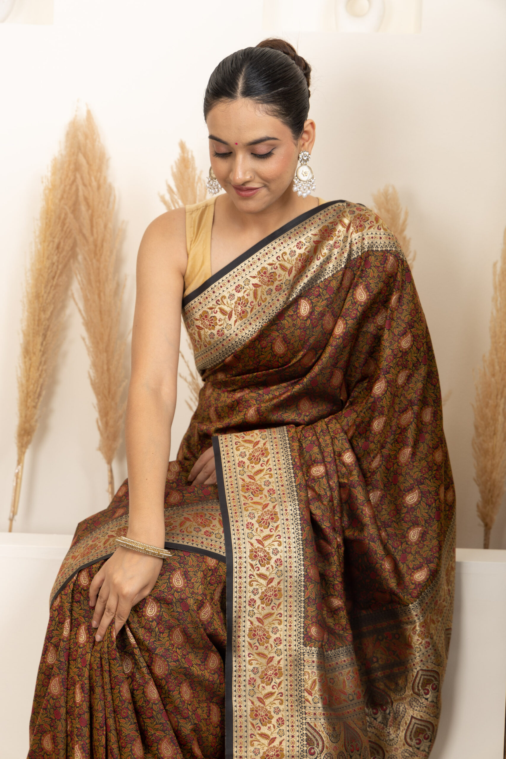 Overall Style: A classic and heritage-inspired saree that showcases rich craftsmanship. Ideal for weddings and grand occasions, offering a timeless and sophisticated appeal.