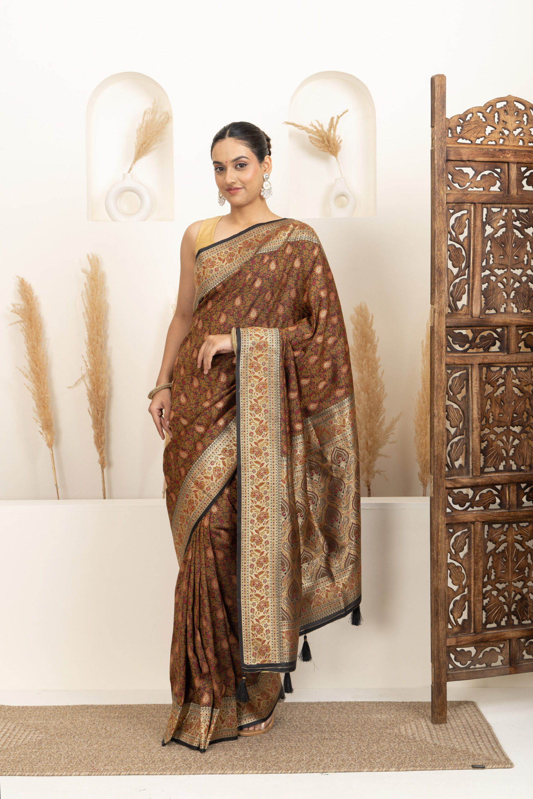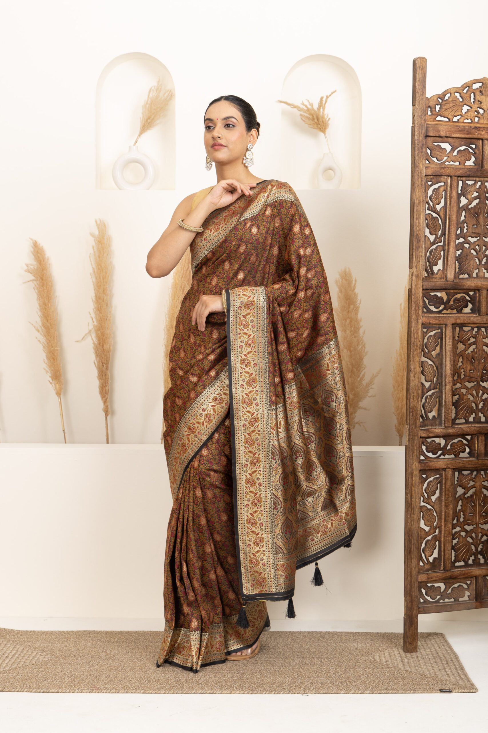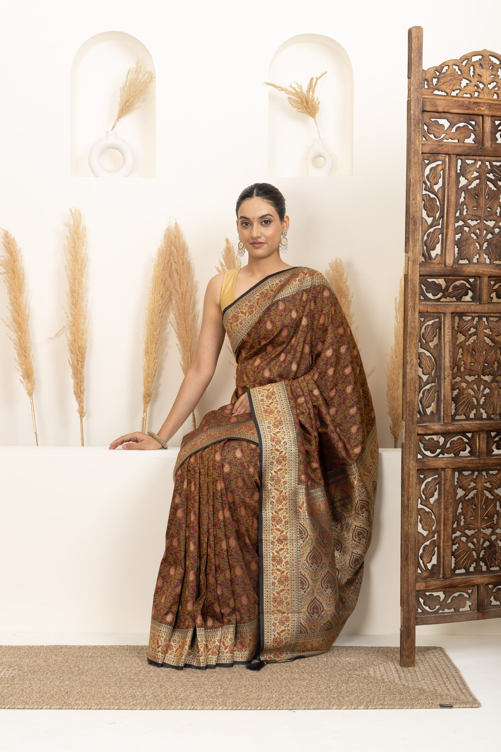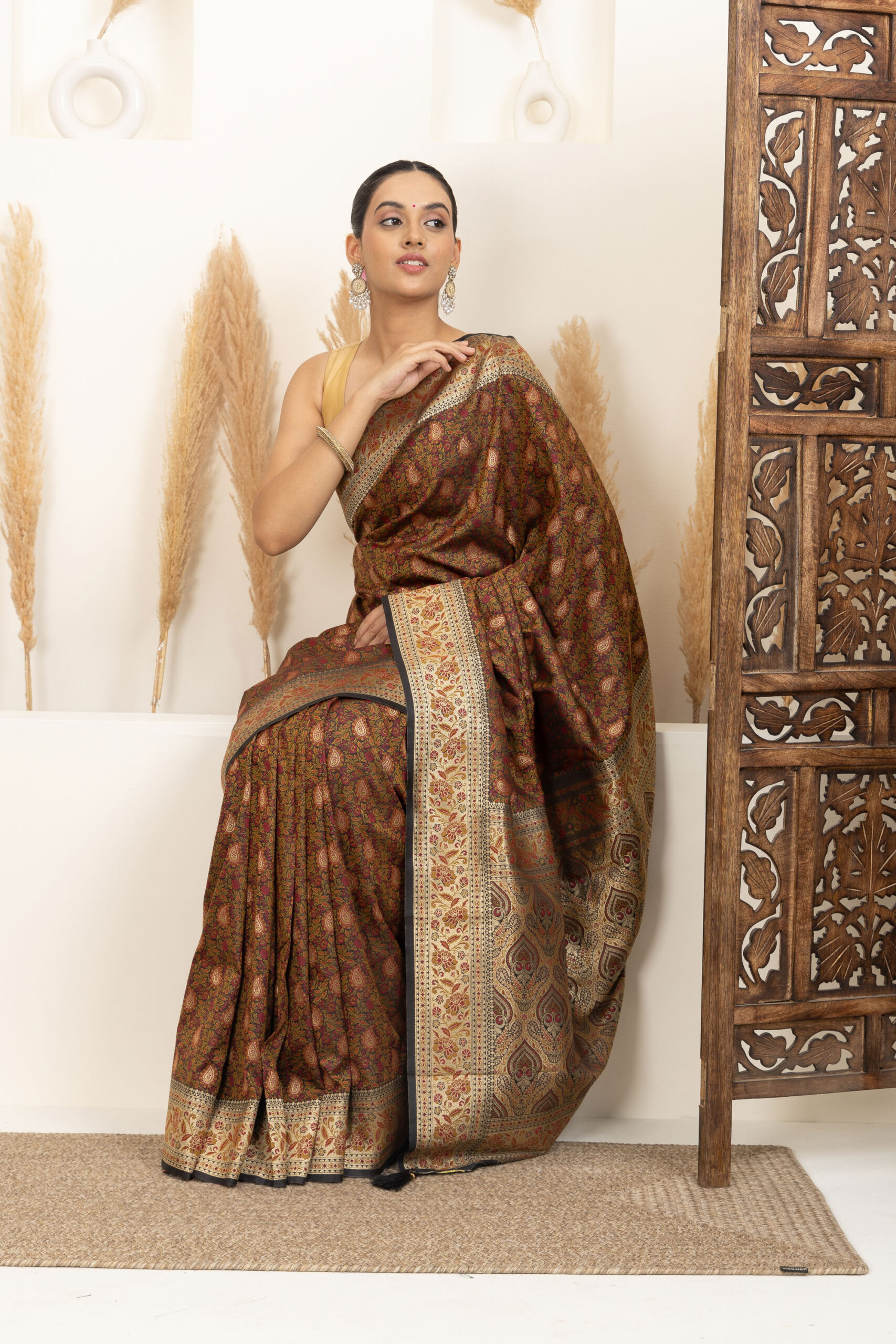 Overall Style: A classic and heritage-inspired saree that showcases rich craftsmanship. Ideal for weddings and grand occasions, offering a timeless and sophisticated appeal.