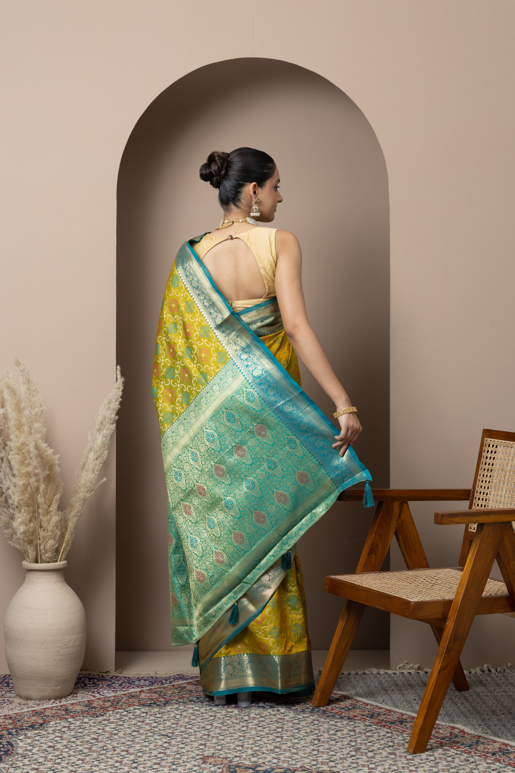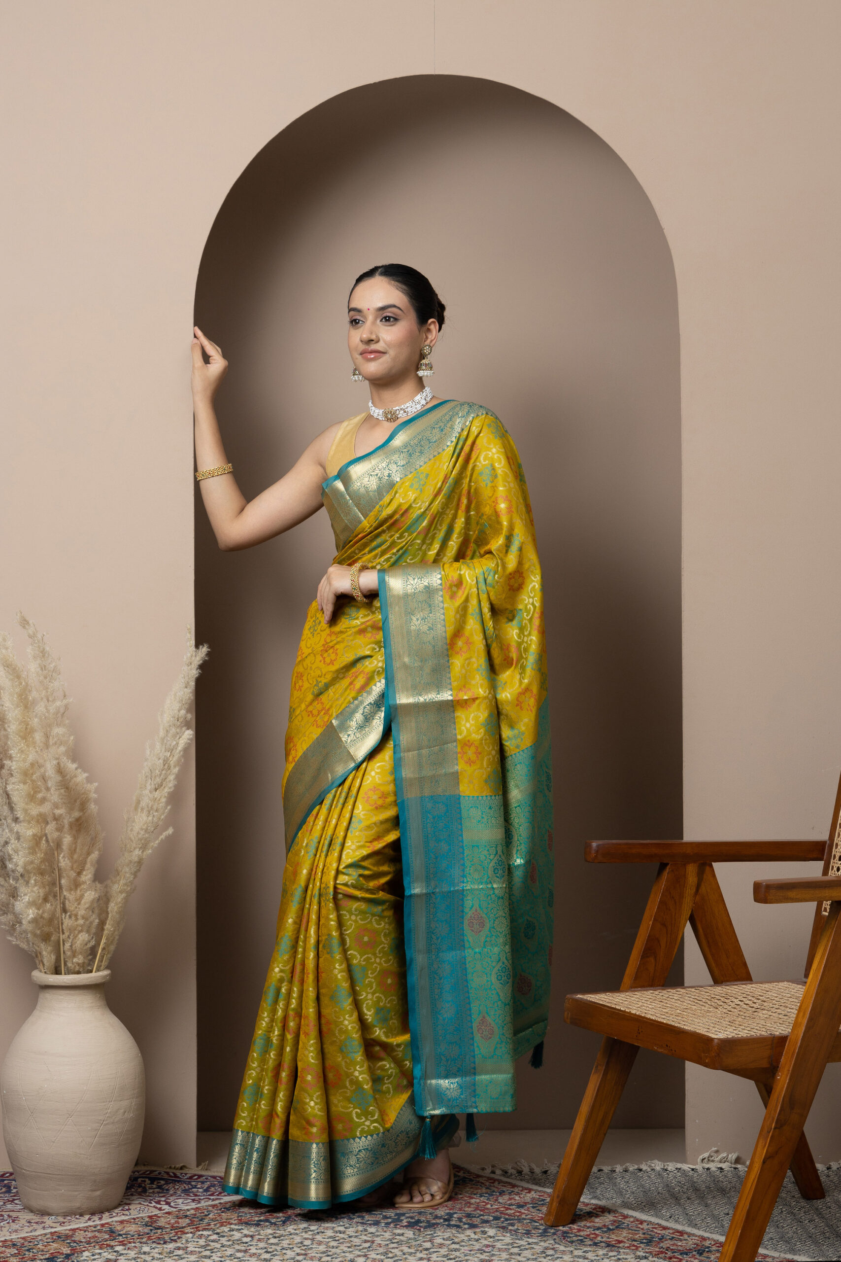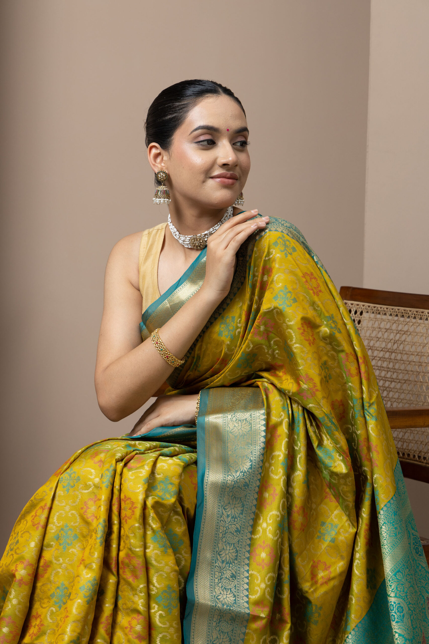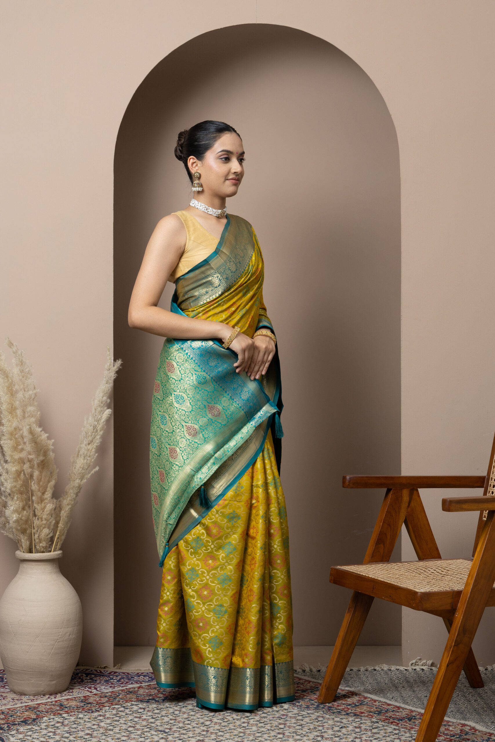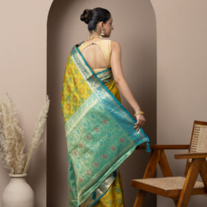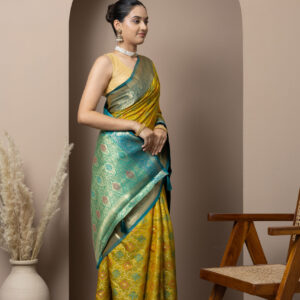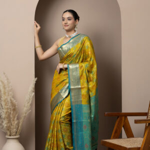 Overall Style: A vibrant and regal saree that beautifully combines bold colours with traditional craftsmanship. Ideal for festive occasions, weddings, and cultural celebrations, this piece offers a striking yet elegant look.
