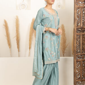 ● Colour: Soft Teal Green with delicate multicolour embroidery