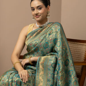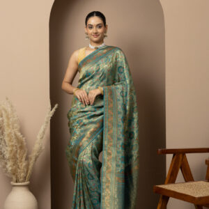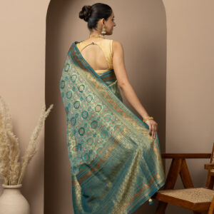 ● Colour: Teal Green with rich gold zari weaving